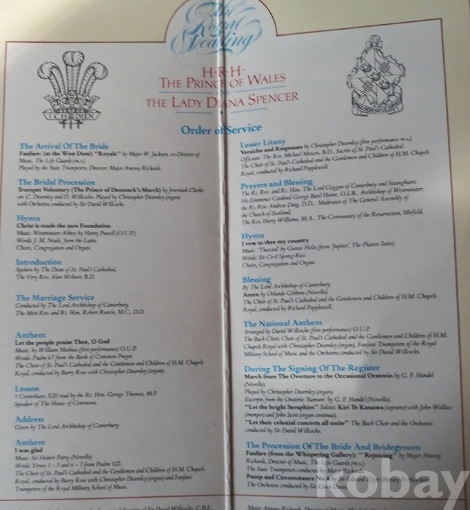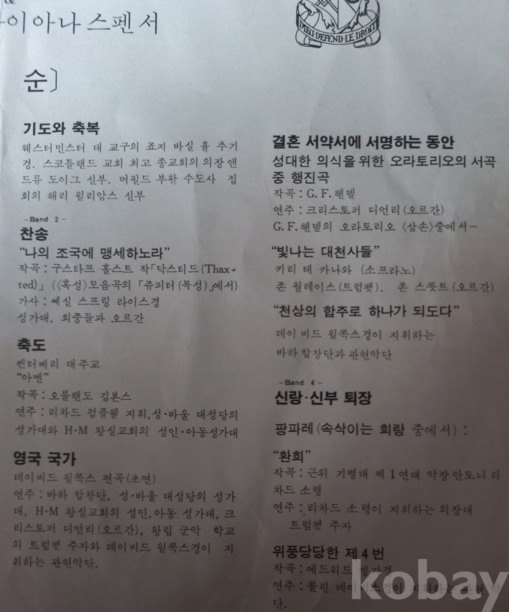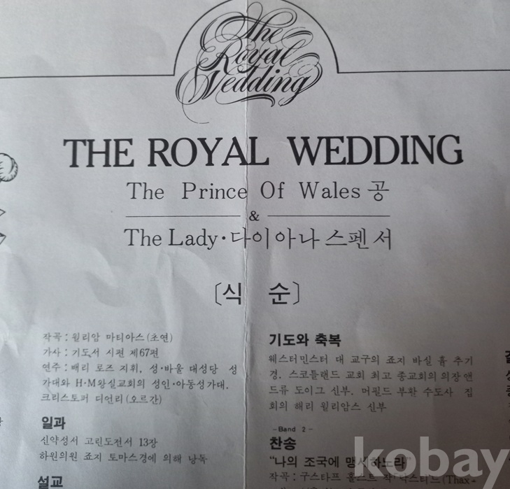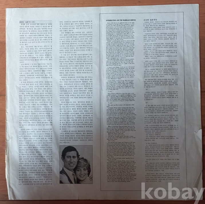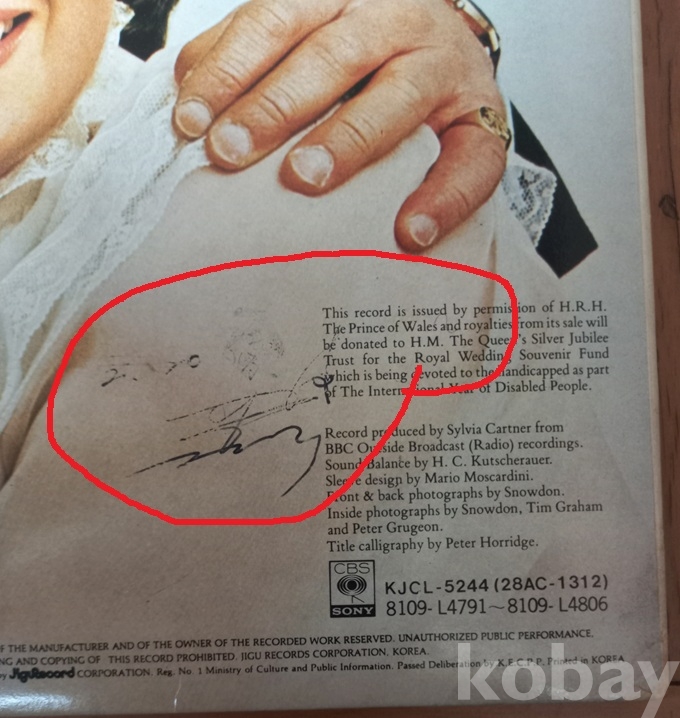 대영제국의 황실 결혼식 앨범은 이게 처음이자 마지막이 아닌가 봅니다. 이외에 음반은 보질 못했읍니다. 쟈켓 뒷면에 누군가의 싸인이 보입니다만 누구의 것인지는 모르겠읍니다. 쟈켓 안팎에 기록된 내용은 영문이라서 정확히 모르겠읍니다 예전엔 더러 보였는데 지금은 코빼기도 안 비치고.