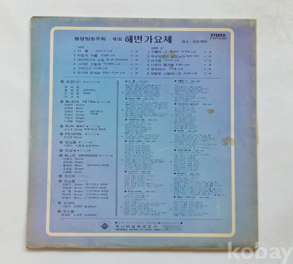 EX : 약간의 마모, 모서리 찢김 존재 음반상태