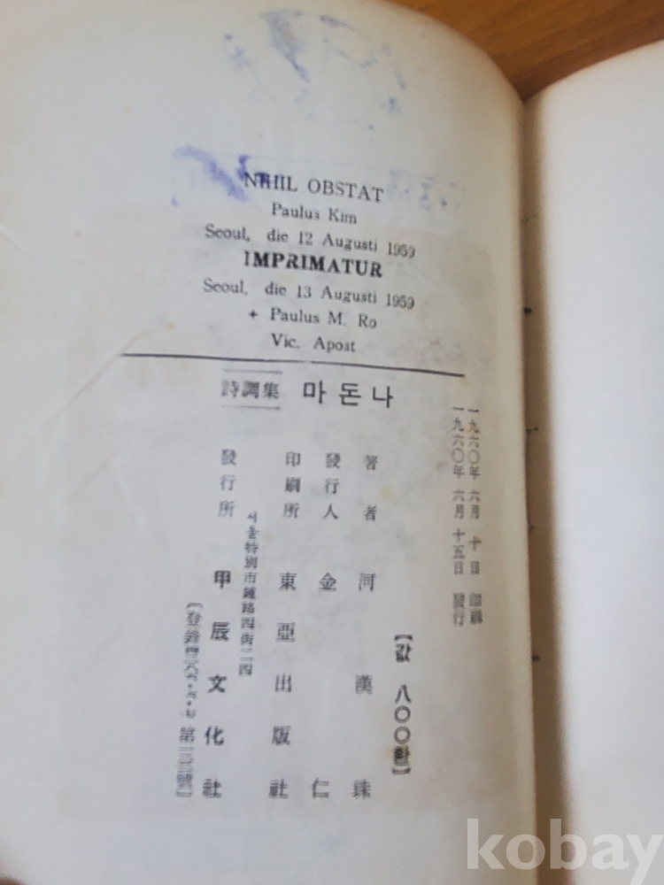 1. 마돈나, 하한주, 갑진문화사, 1960년, 205쪽, 상태 상, 사진 참조