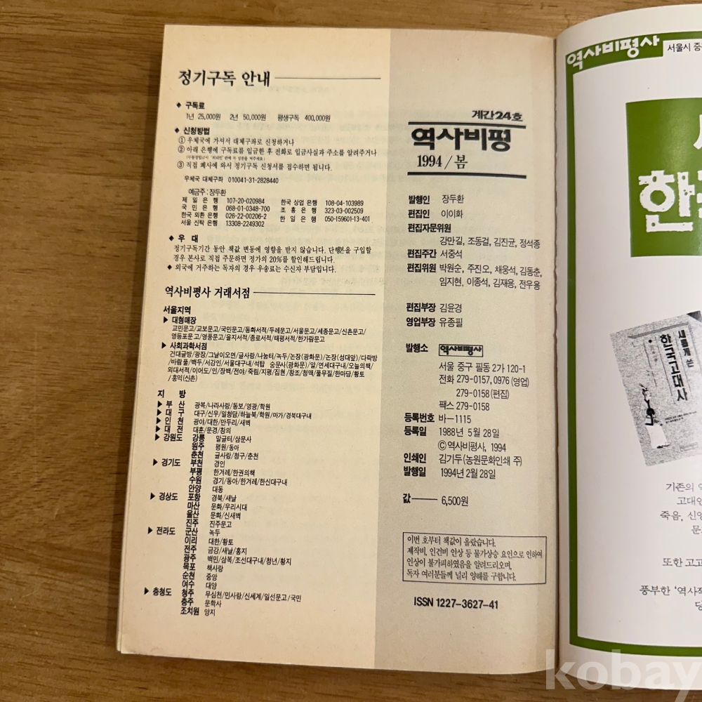 [일제강점기, 조선총독부, 민족협동전선, 홍명희] 역사문제연구소, <역사비평 1994 봄>, p. 381, 상태 중급(사진참조)