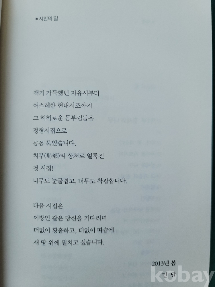 민달(경상남도 산청: 1967) 저자서명 처녀시조집.