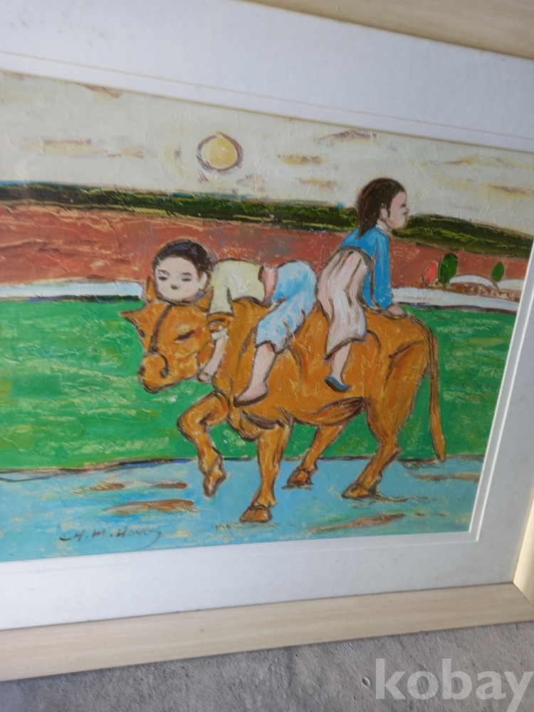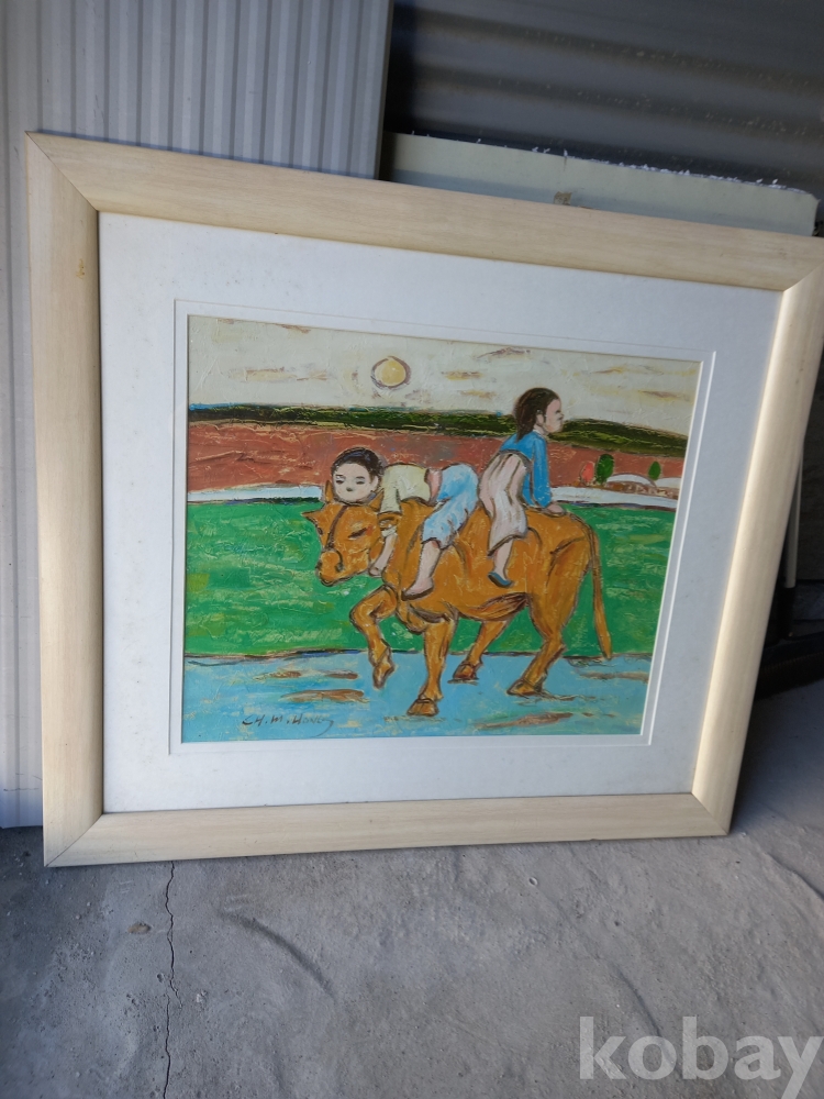 추억의 유화1점 소를타고 한때를 즐기는 아이들 작품 입니다