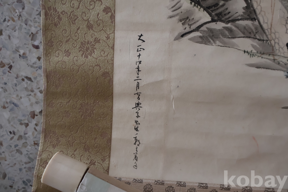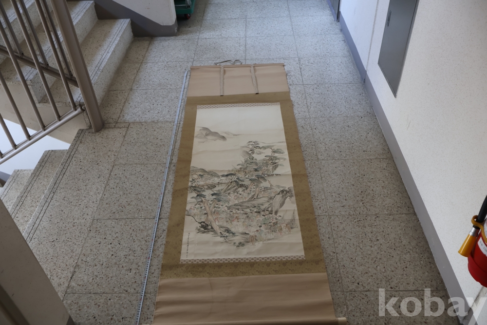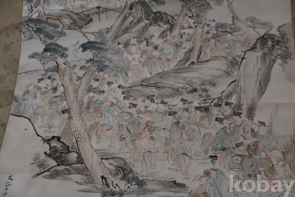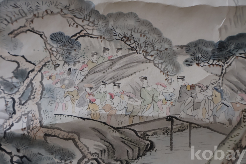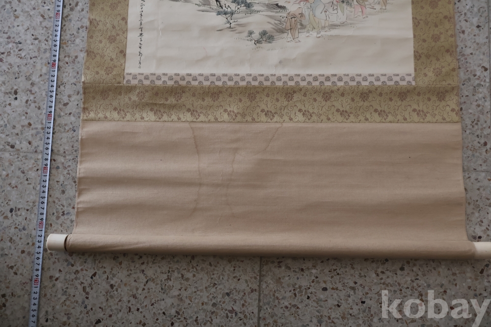 제작 년도 를 가진 대형 족자 임니다 수많은 사람이 보이는 당대의 명화 임니다 사진 참조 하세요 대정 14년 1925 낙기가 보임니다 족자 밑부분에 세월 흔적이 보임니다 6번사진