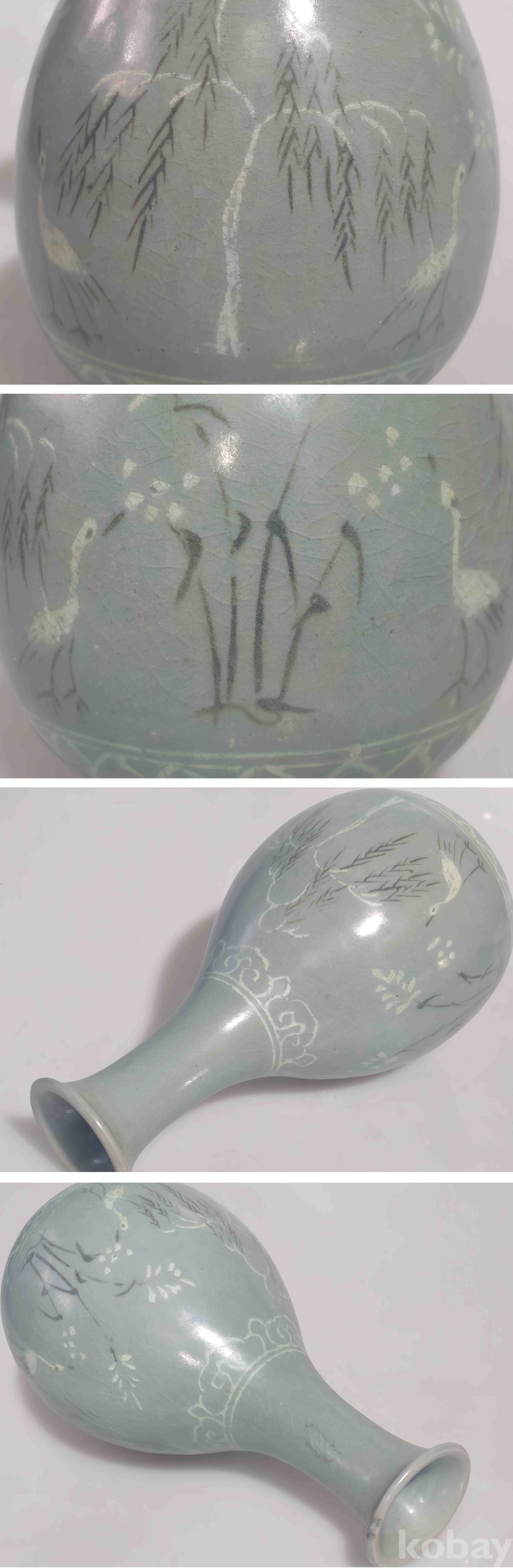 상품명 | 연대감 좋은 청자 흑백상감 포류문 대형 주병 | ||