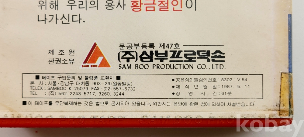 물 품 명 | 황금철인 / 1987년 / 삼부프로덕숀 |