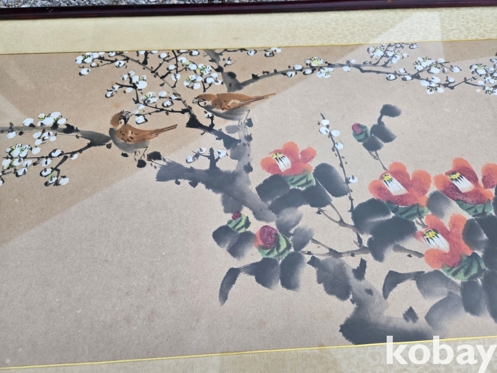 화려한 색상의 꽃과 새 표현 6폭 자수 병풍 입니다.