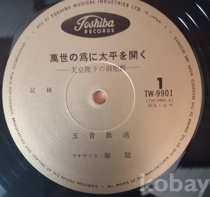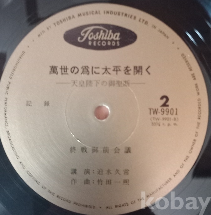 ◆ (記錄) 萬世Eの爲に太平を開く(天皇陛下の御聖斷), Toshiba RECORD()TW-9901/ 게이트 폴더(고급 양장판), 1앨피. 일본원반. 해설책자(39면) 내장.