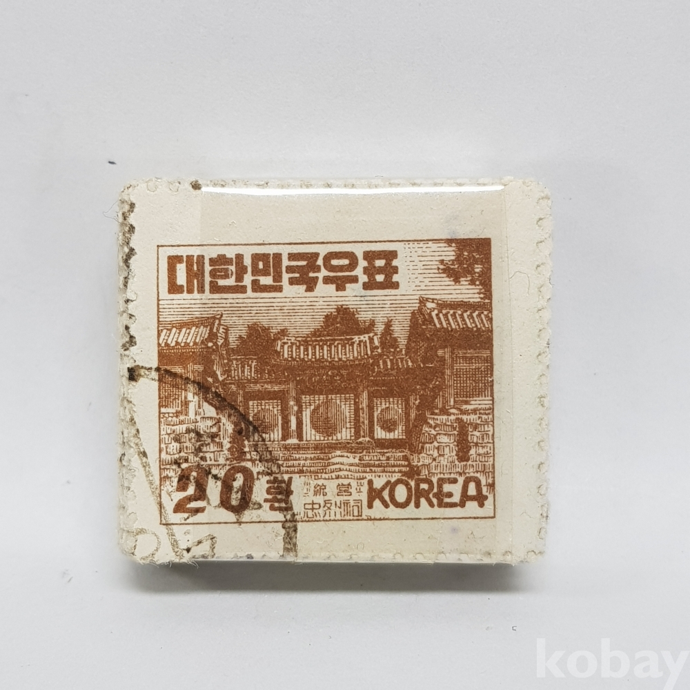 - 1950년대 환화 제 1차 보통 20환 충렬사 일부인 미확인 사용제 우표 약 100매 묶음