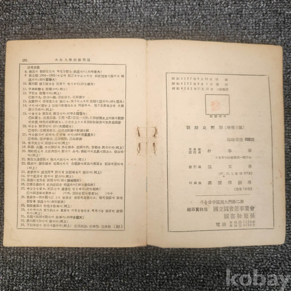 *60년대 이전 포함 ~ 80년대의 옛날 책들의 <낙장, 세월의 흔적, 훼손> 등은 경매 시작가격이 그 상태를 반영한 가격이기 때문에 해당 사유로 반품 불가하오니 감안하시고 입찰 부탁드립니다. 이 와 같은 사항이 구매 결정에 중요한 사항이라면 입찰을 피해주시길 부탁드립니다.
