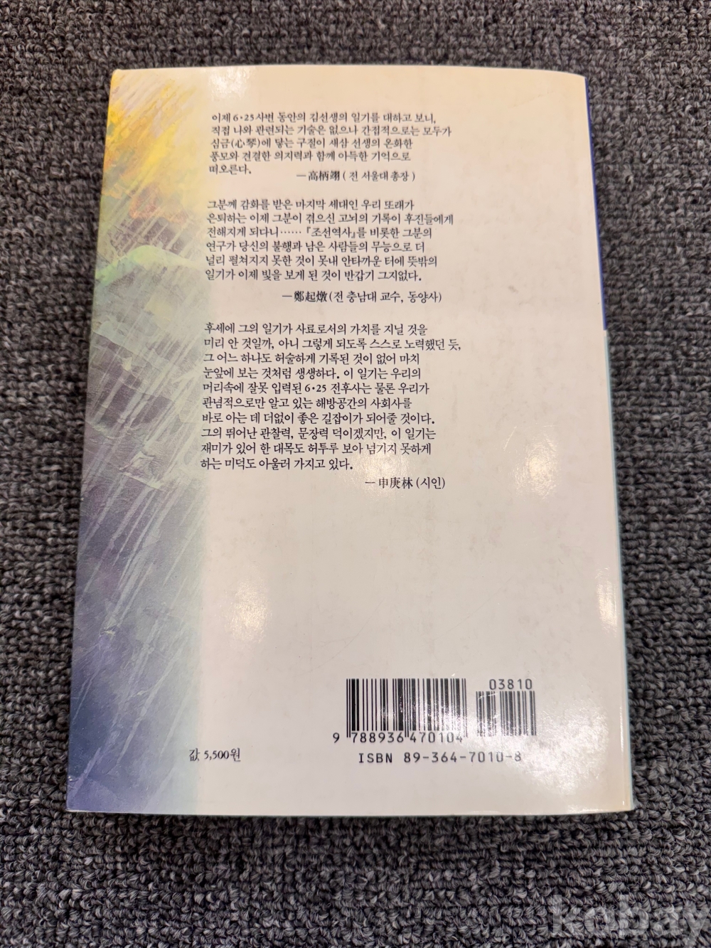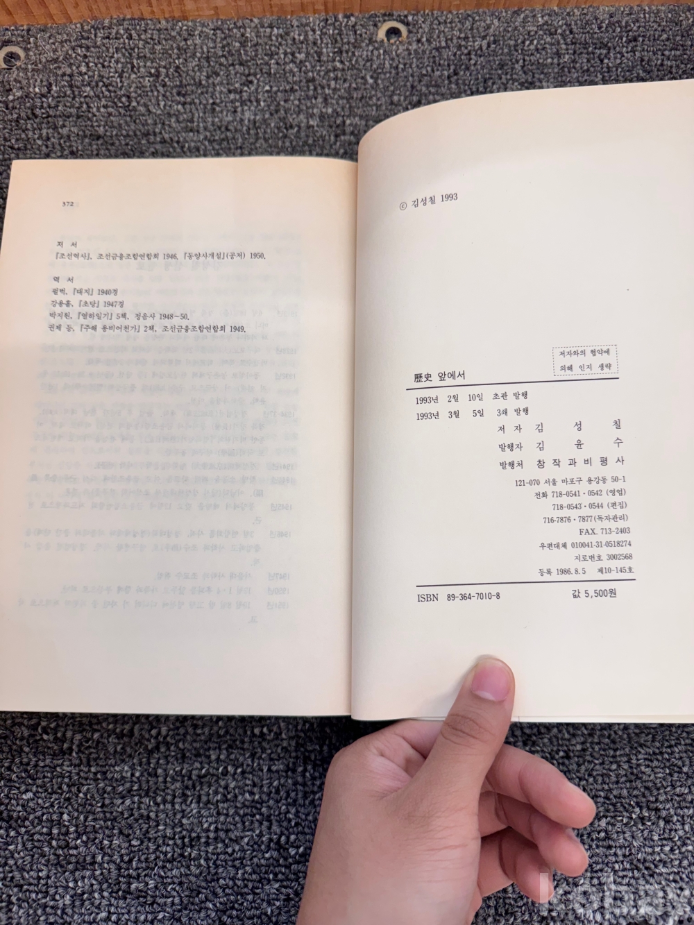 [한국현대사, 6.25전쟁, 체험기] 김성칠, <역사 앞에서 -한 사학자의 6.25일기->, 창작과비평사, 1993, p. 372, 상태 중급(사진참조)