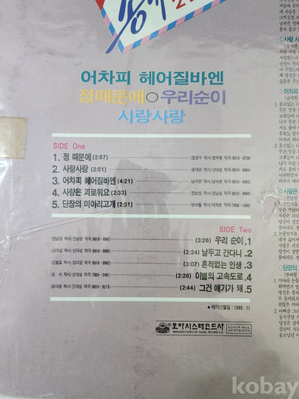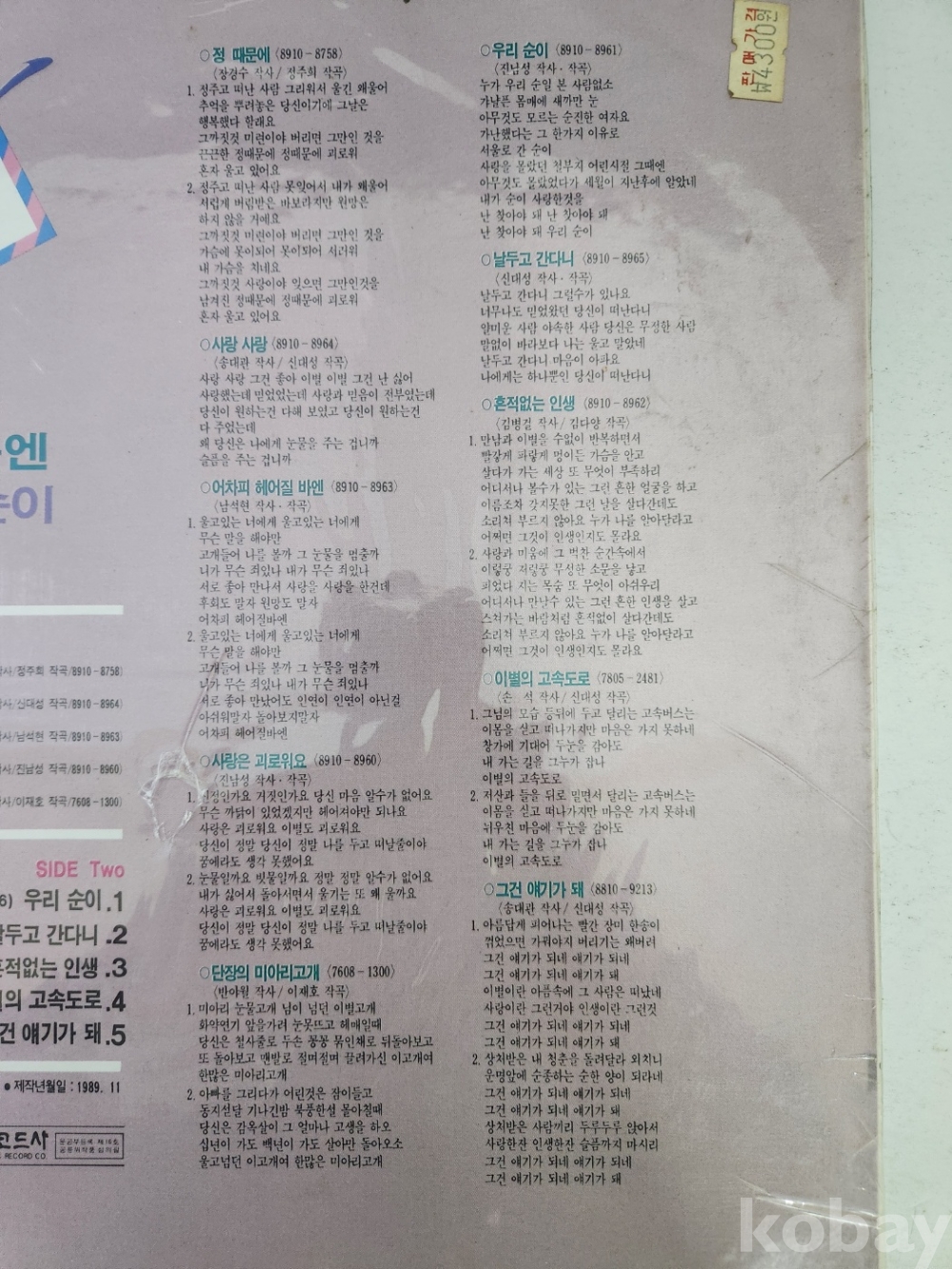 1989년에 발매된 송대관 2집 LP판입니다.