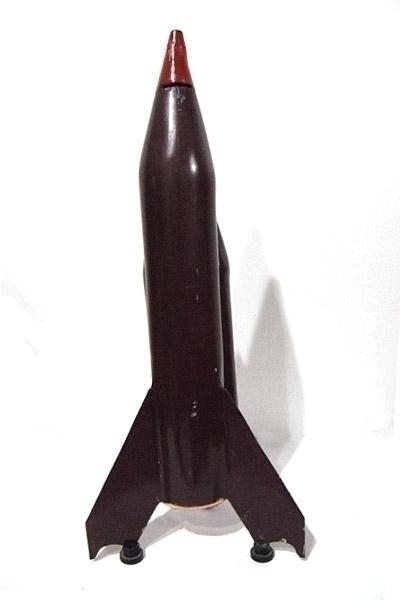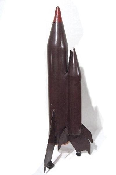 수십년전에 철재로 만들어진 로켓트모양의 저금통 입니다.