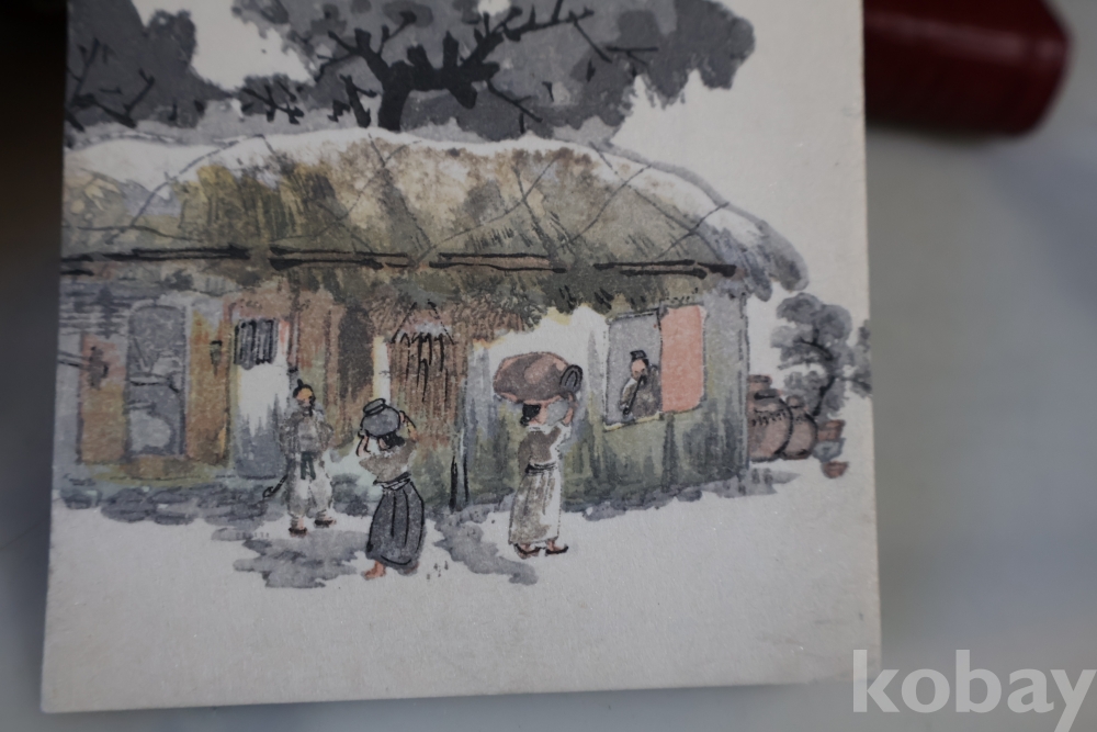 일반 엽서가 아니라 목판화 로 만든 귀한 목판화 엽서 임니다 당대의 일본 화가의 이름이 보이는 1930대의 귀한 목판화 임니다