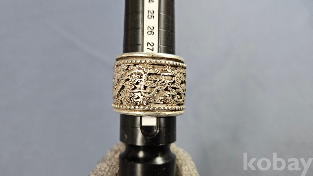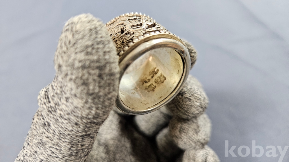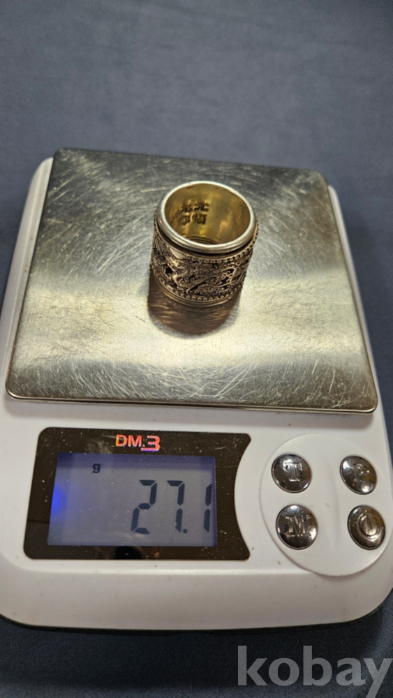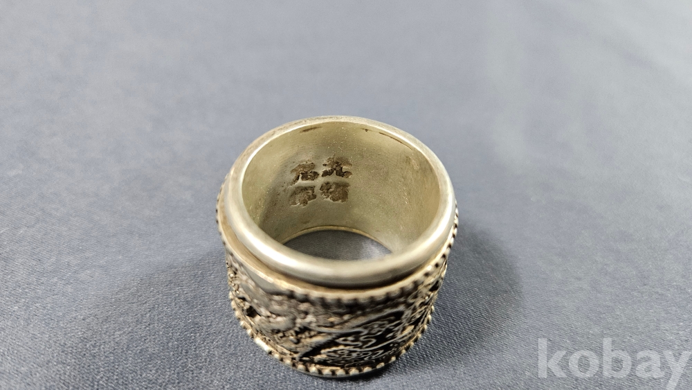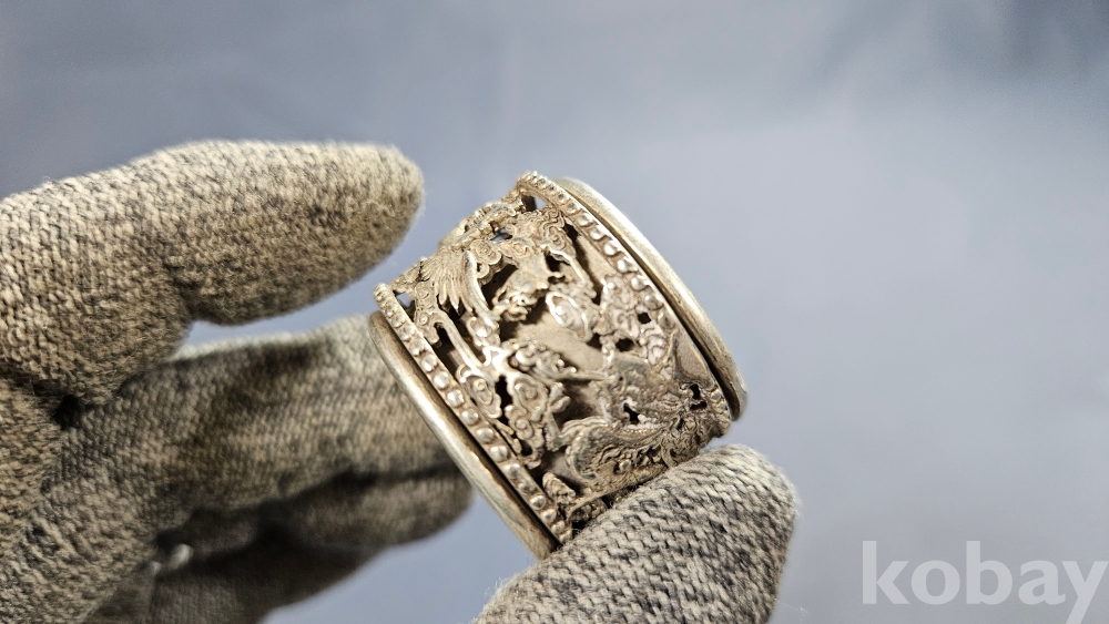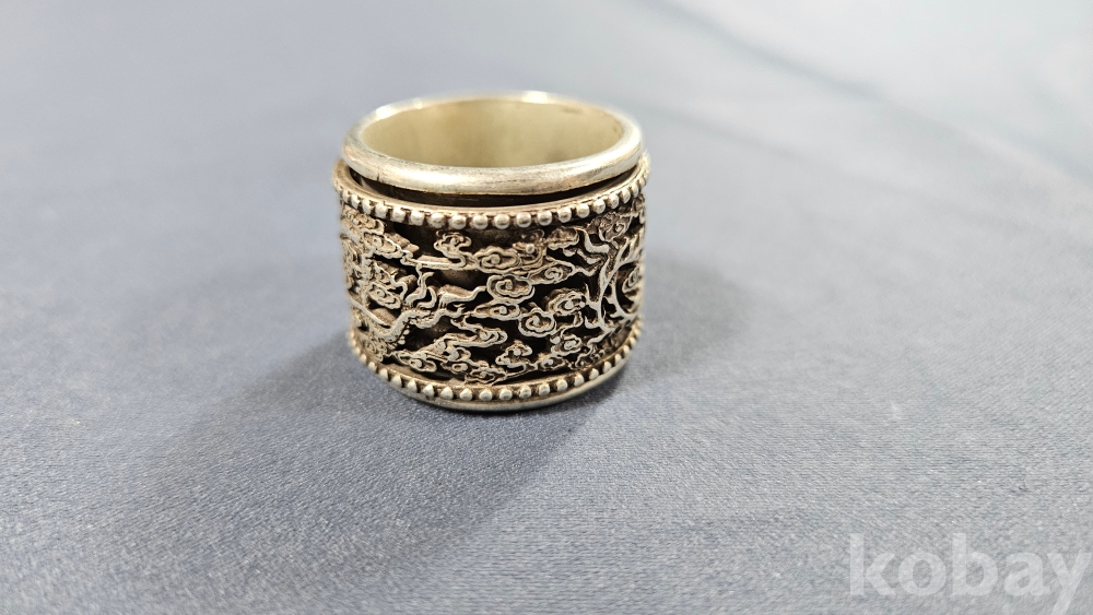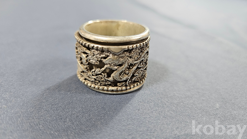 용과 봉황 문양이 투각으로 들어있는 큼직한 반지형태 입니다.