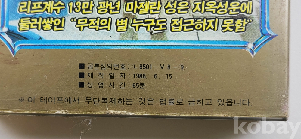 물 품 명 | 로보트 타이맨의 지옥성운의 대결 / 작은 케이스 / 1986년 / 대영비디오프로덕션 |