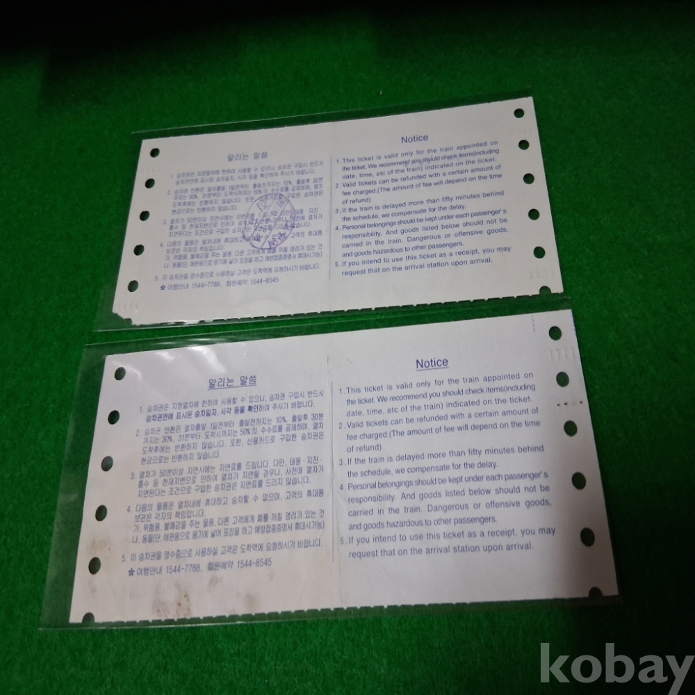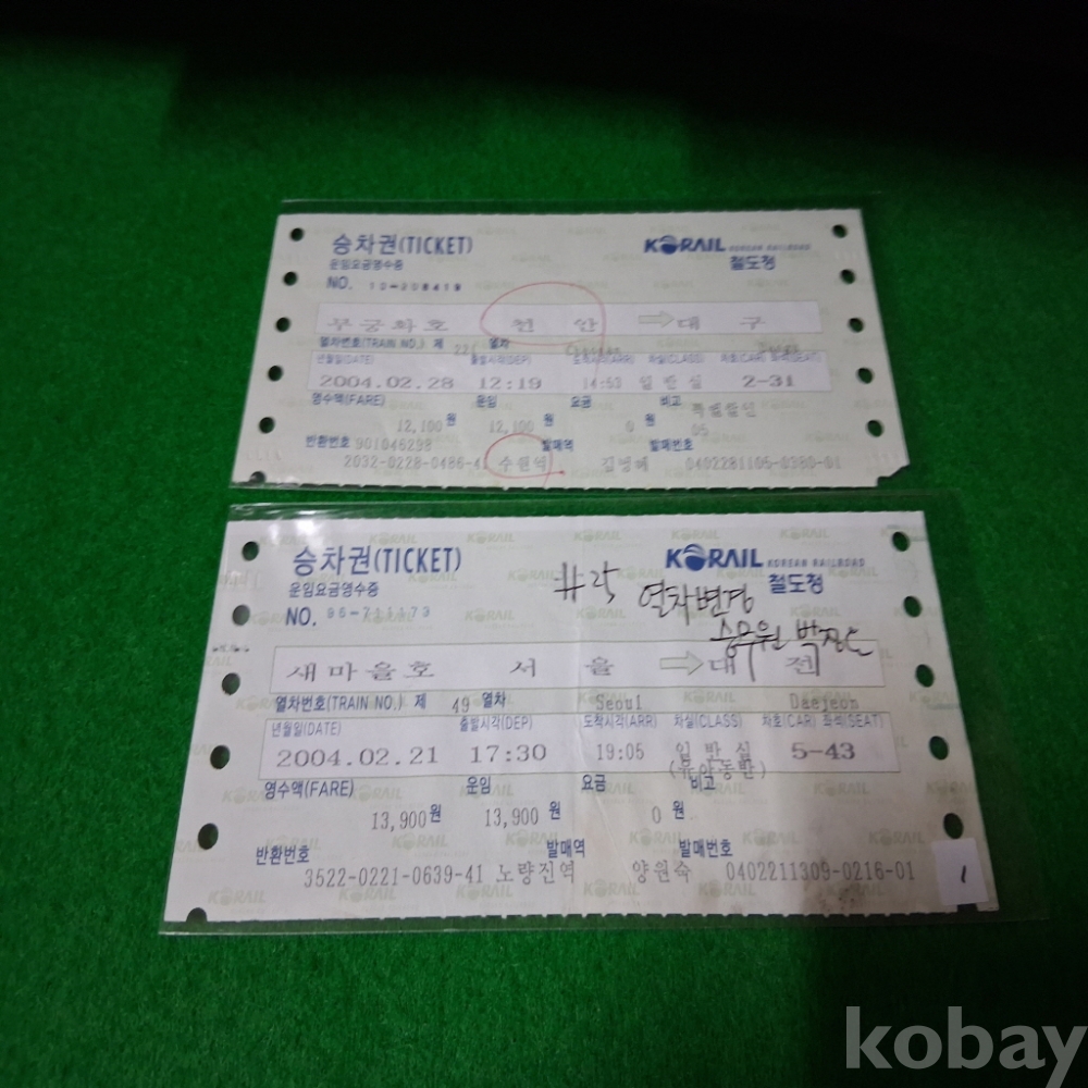 한국철도 새마을호,무궁화호특별용지 승차권 2매 사용제