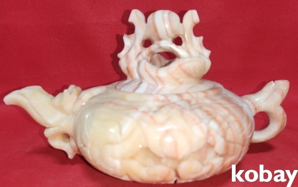 색감이 화려한 옥조각 용문양 다관(茶罐)입니다,