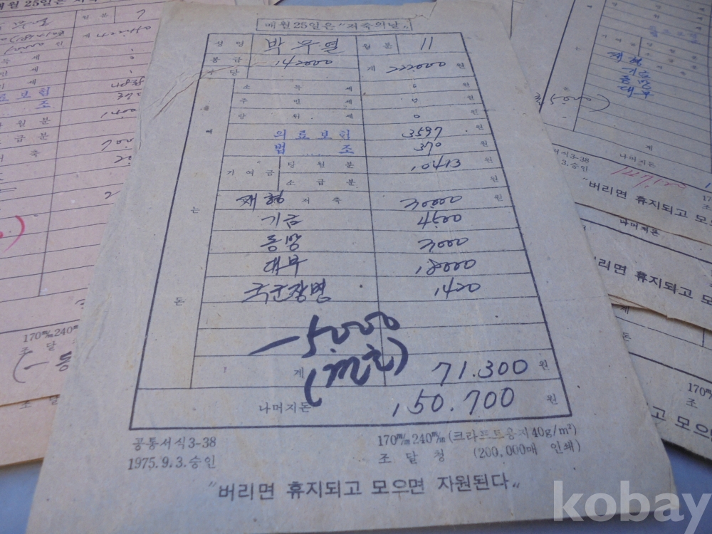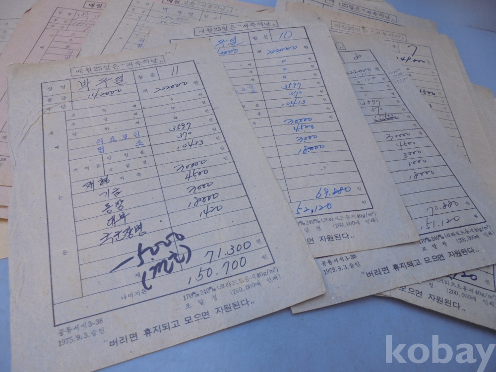 1975년 총 32장 월급봉투 사진에 보시는데로 몽땅 일괄입니다.