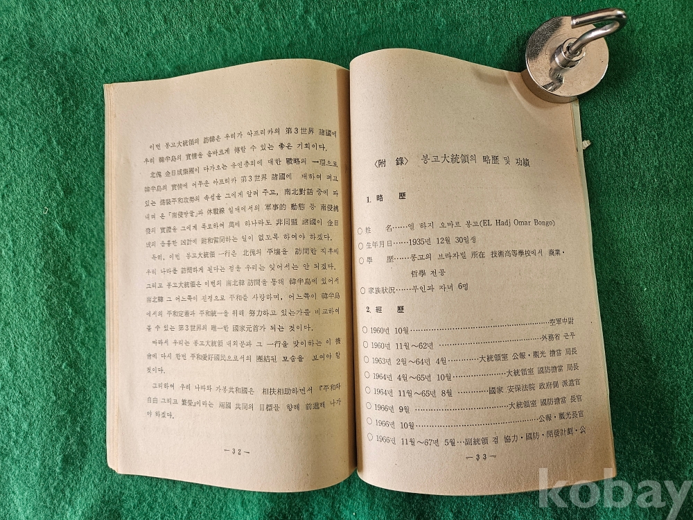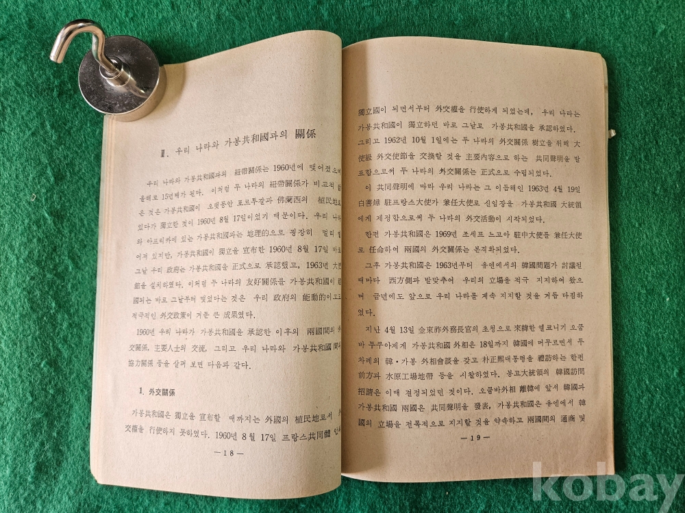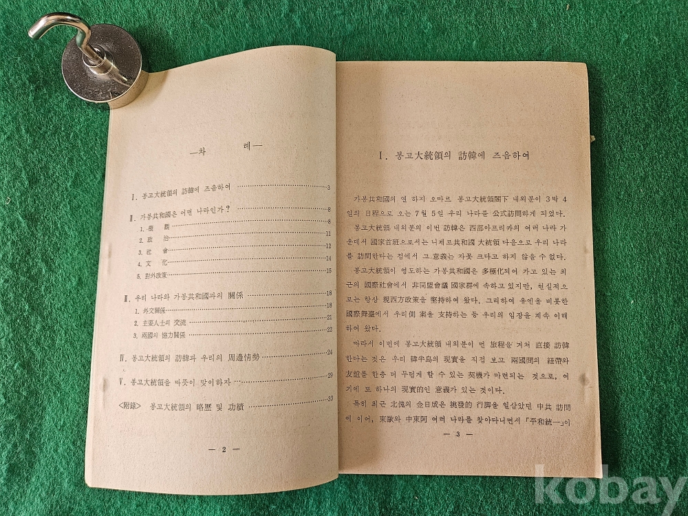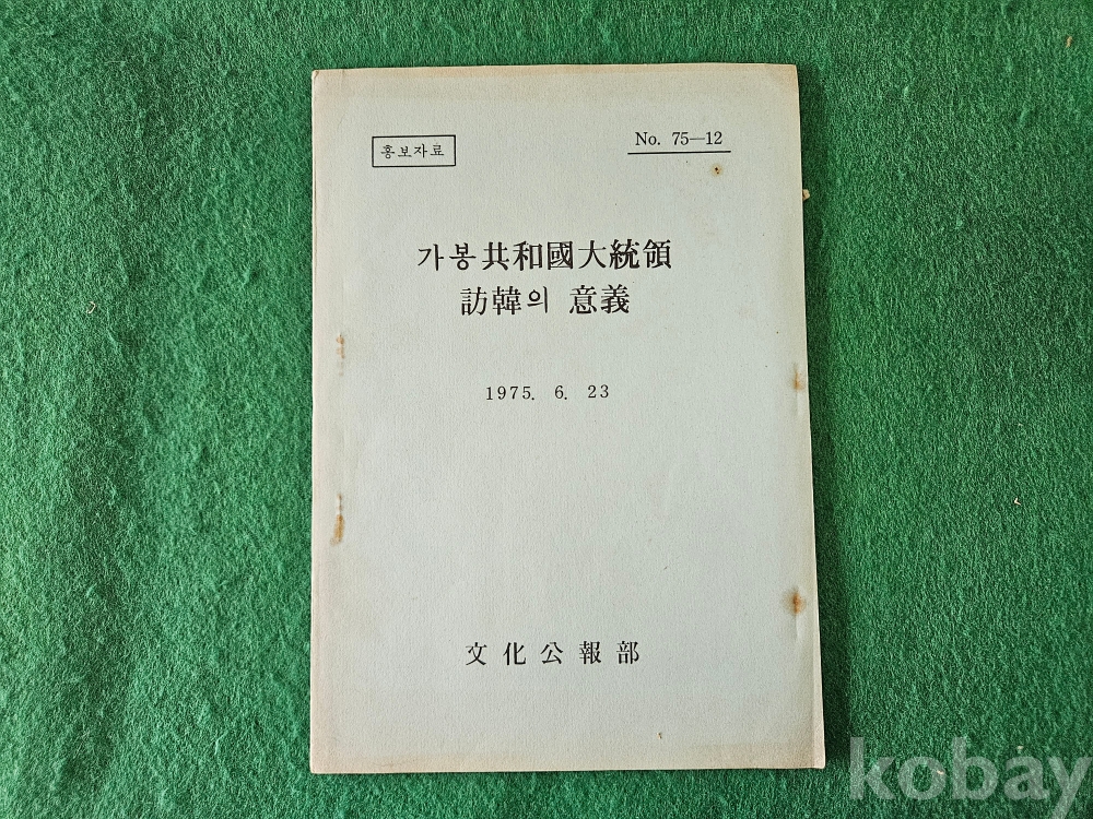 1] 품명 : 문화공보부에거 발행한 " 가봉 共和國 大統領 訪韓 의 意義 "