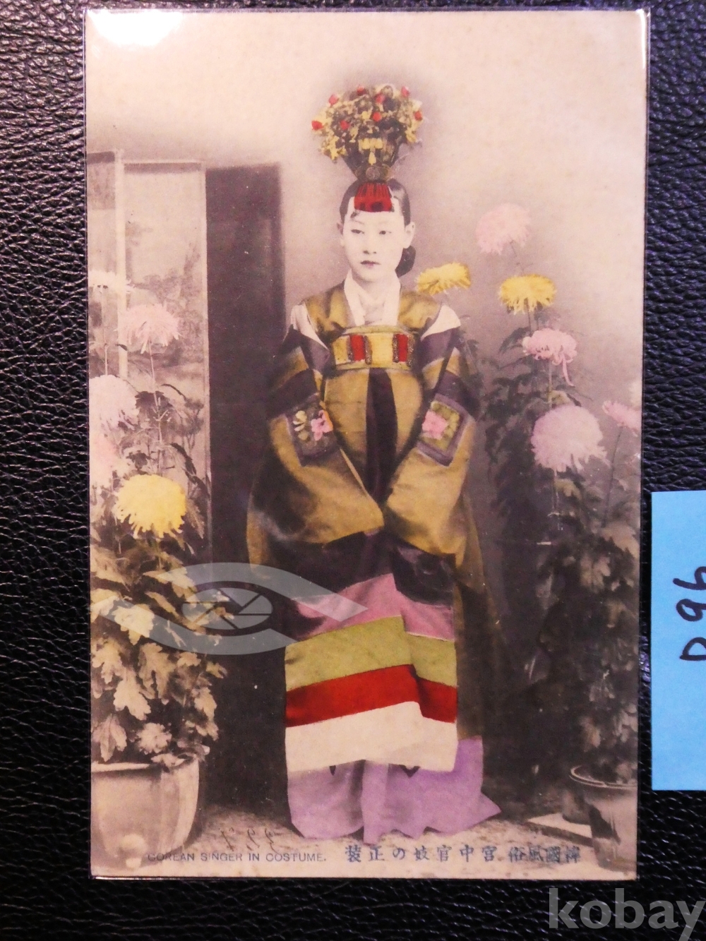 ▣근대한국엽서(진본): 궁중 관기의 모습, 수채색(손으로 직접 색을 칠한 엽서) 엽서임, 한국풍속. 대한제국기에 발행한 엽서.
