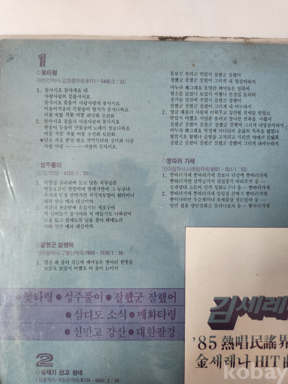 김세레나 히트곡 제2집 LP판입니다.