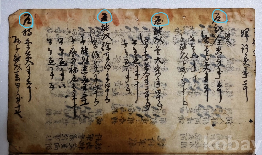 ◈ 문서 뒷면에는 주묵(朱墨)으로 수정하거나 기호를 표시한 곳이 많다.