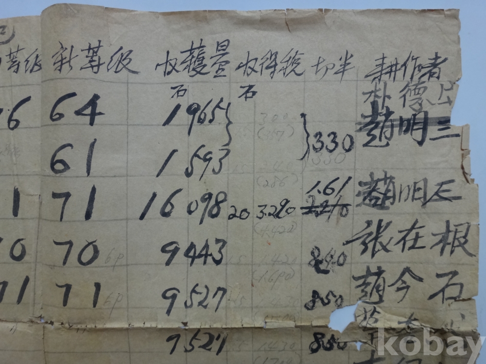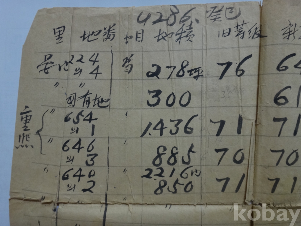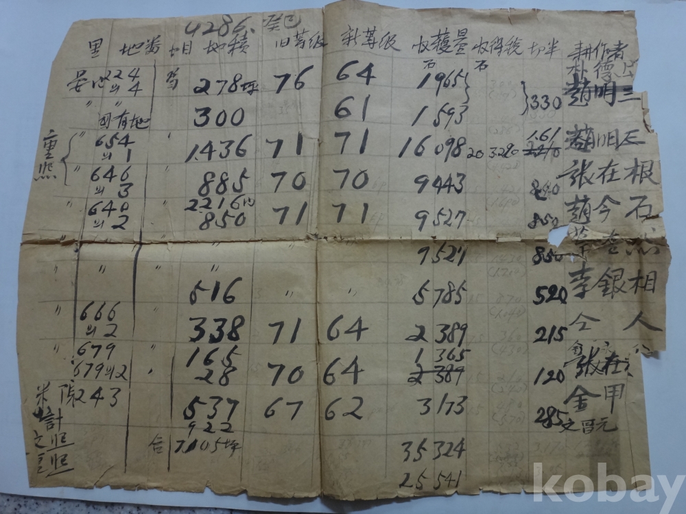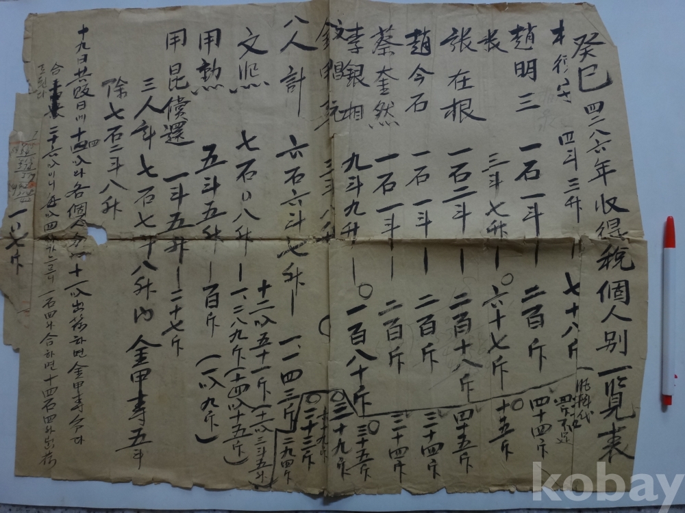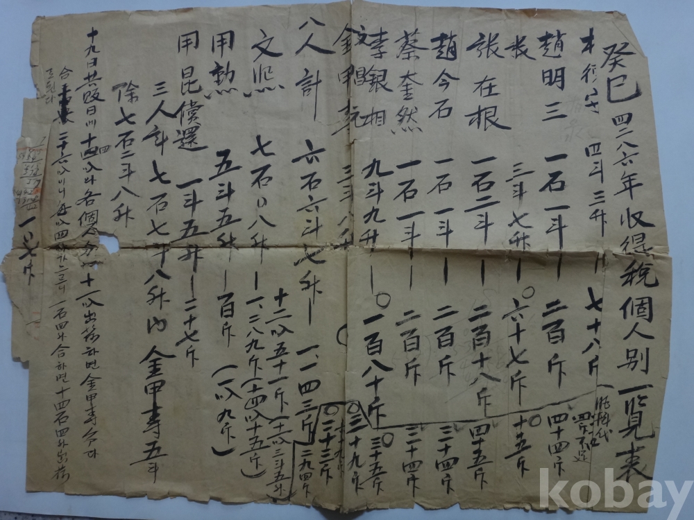 수득세 개인별 일람표 - 뒷면 세부내역표 (1953년)