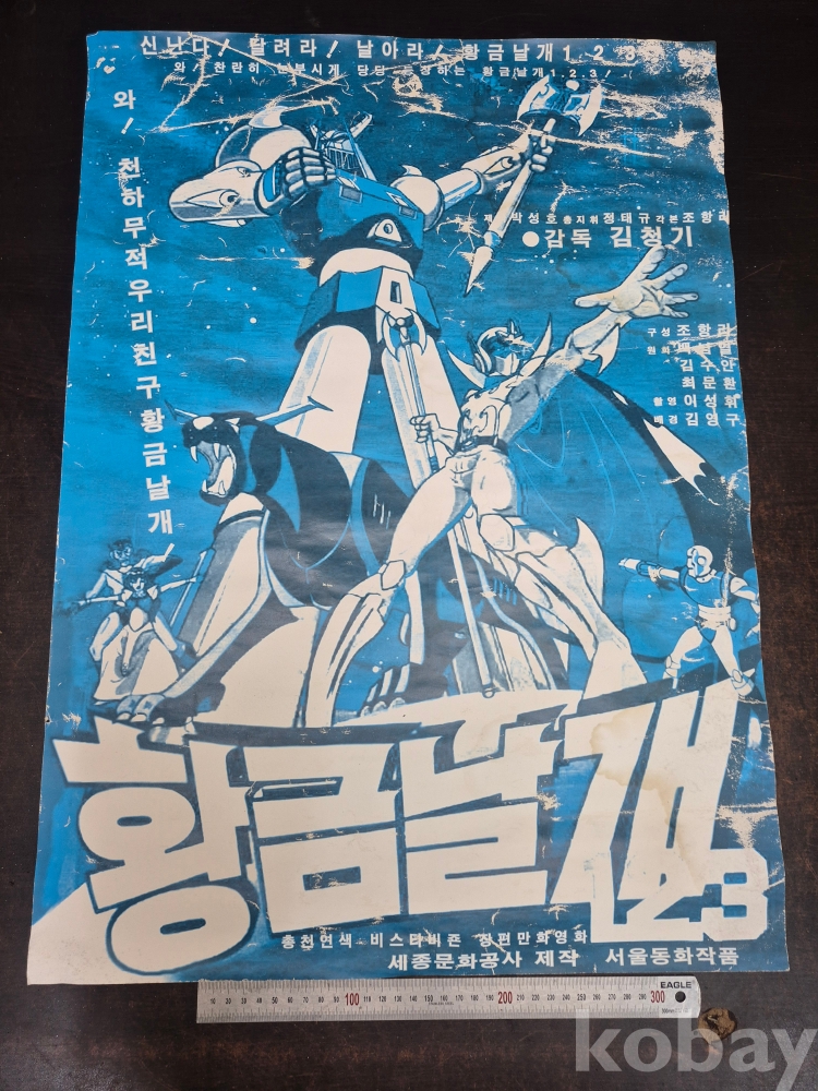 황금 날개 1.2.3 장편만화영화 포스터 감독 김청기 진위여부 알수 없음 물에 젖은 흔적있음 찢어짐있어 테이 프 작업있음