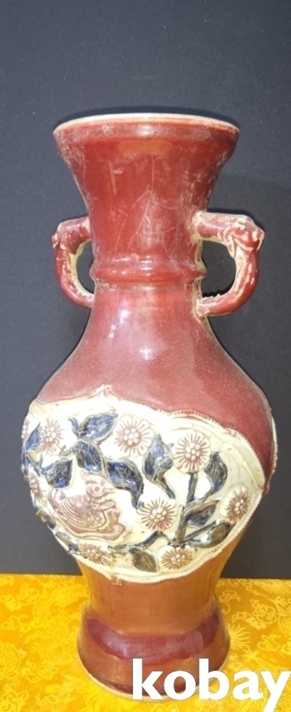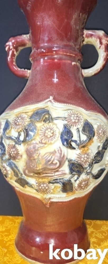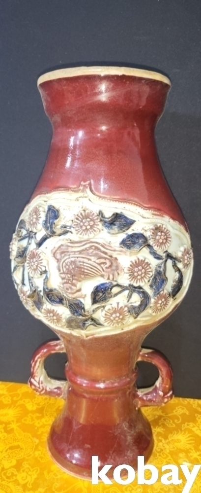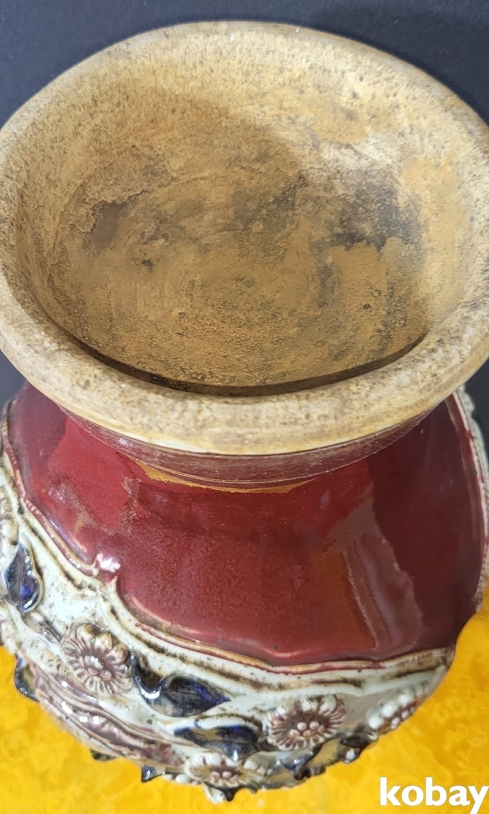 유리홍 첩화(貼花) 화조(花鳥) 문양 양이병입니다,