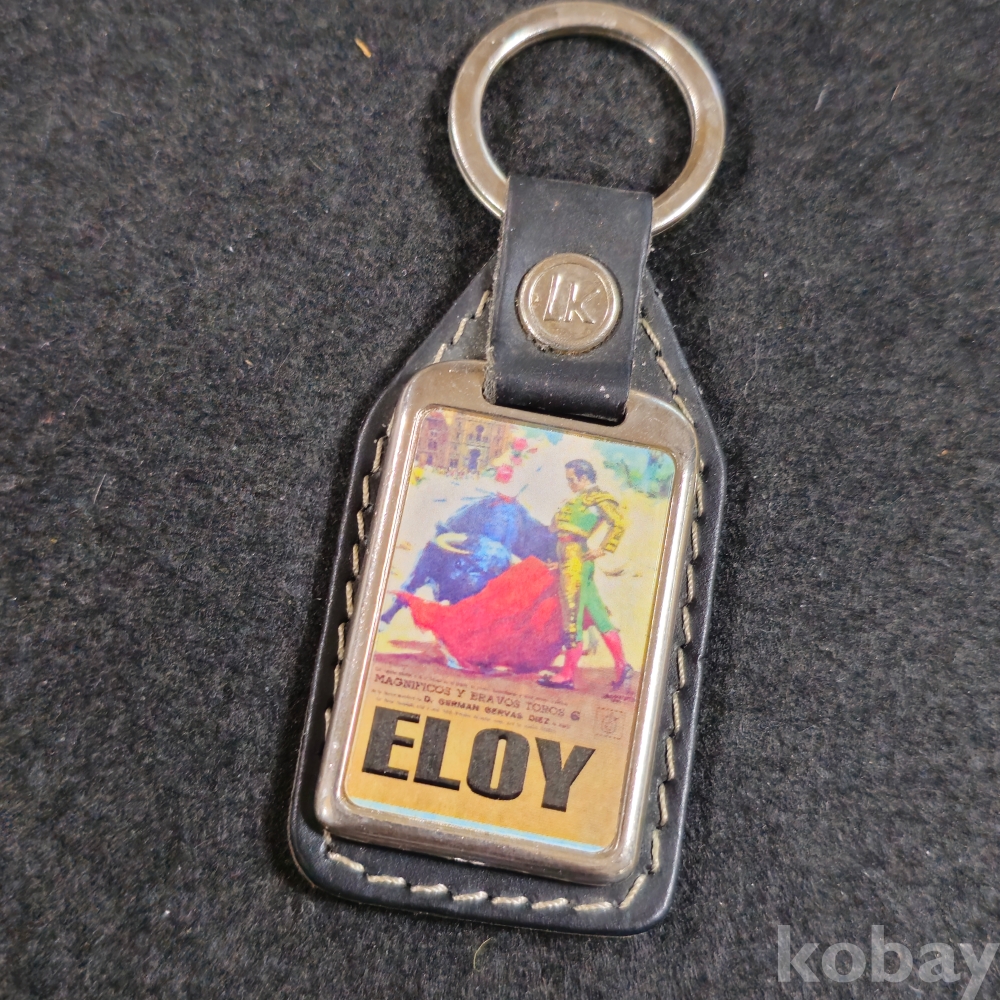 (((관광기념품/키홀더/키링/열쇠고리/가방걸이))) 오래전 스페인 관광기념 투우모습 인조가죽에 금속 키홀더