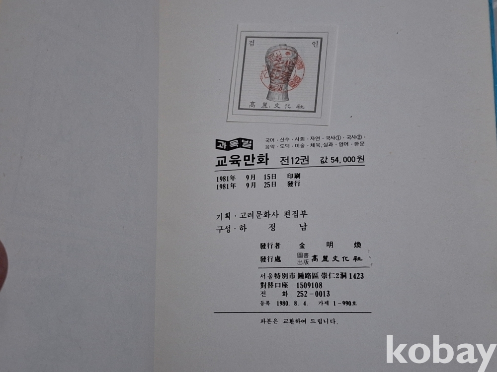 81년 초판 과목별 교육만화로
