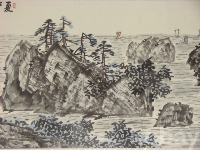 국전 국무총리상 수상한 벽하/벽경 송계일 (碧河/碧耕/ 宋桂一) 의 해경산수화 1/2현판입니다.