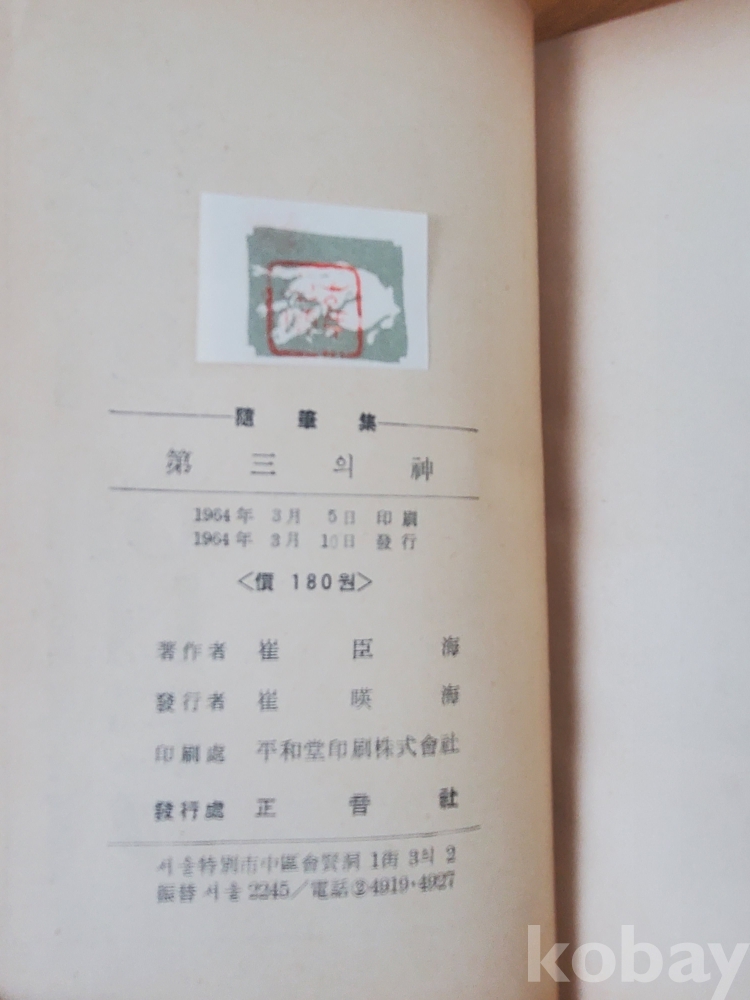 1. 제3의 신, 최신해, 정음사, 1964년, 311쪽, 상태 상, 사진 참조