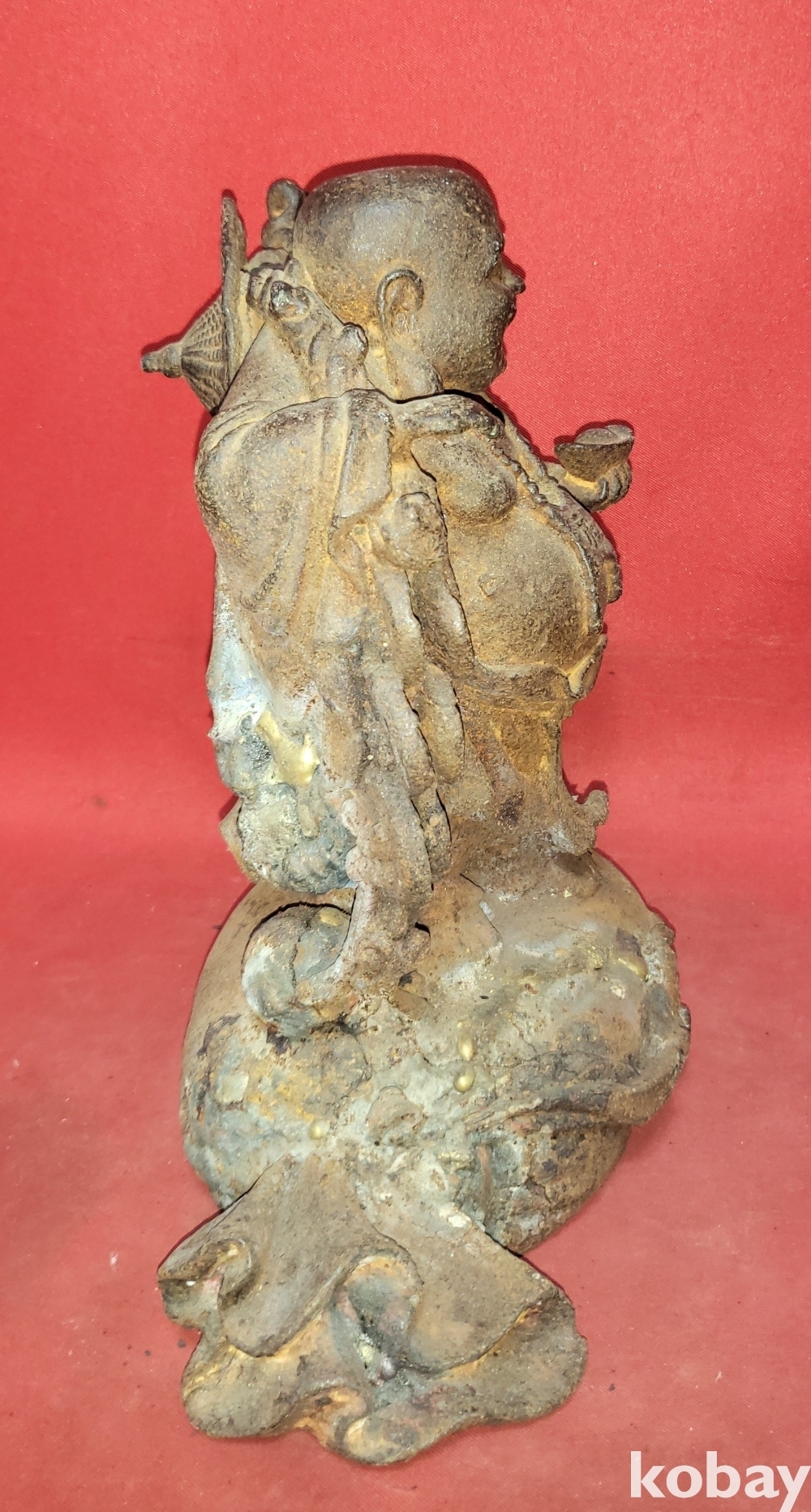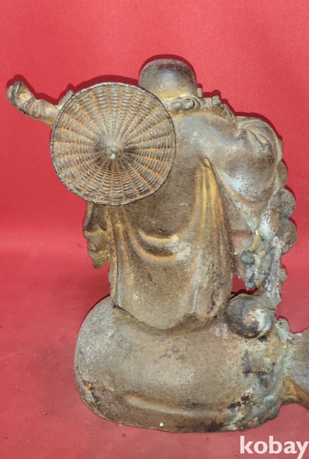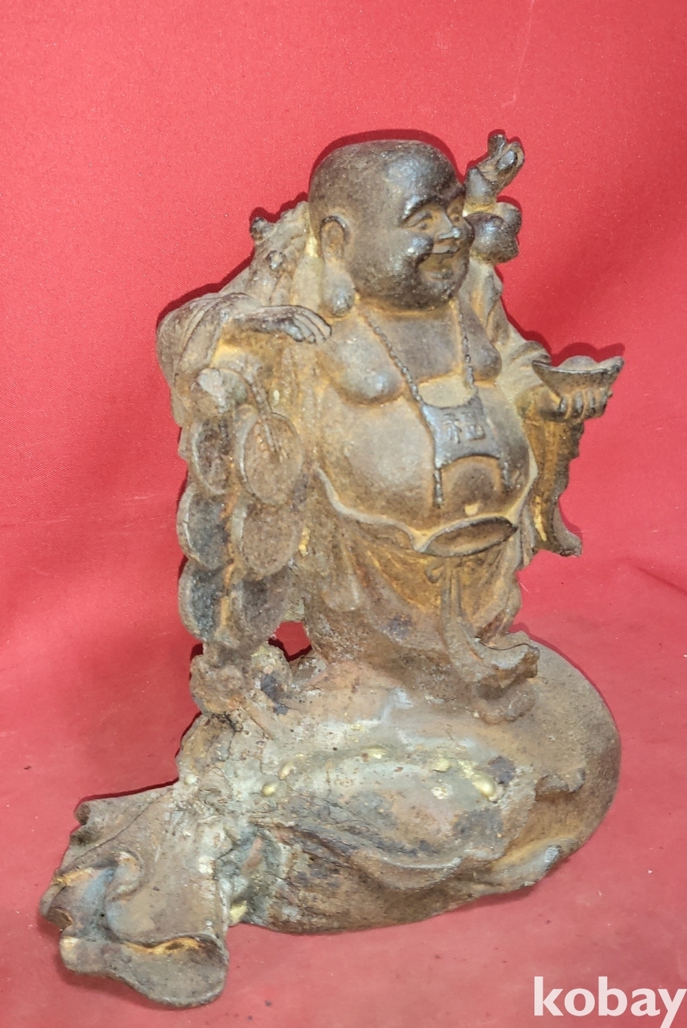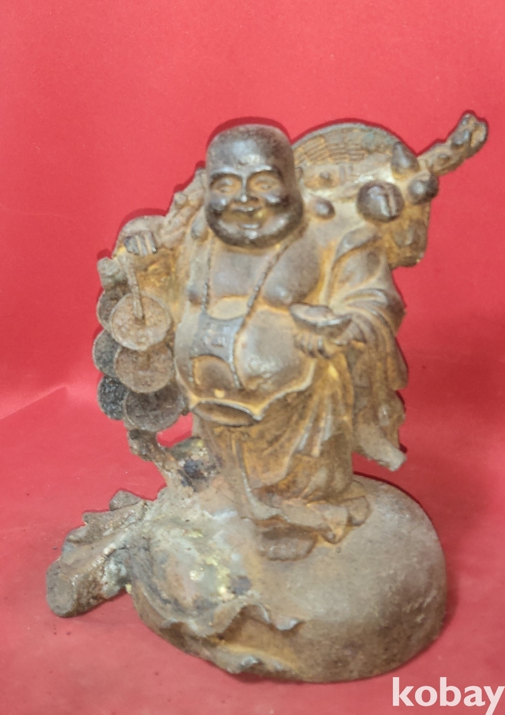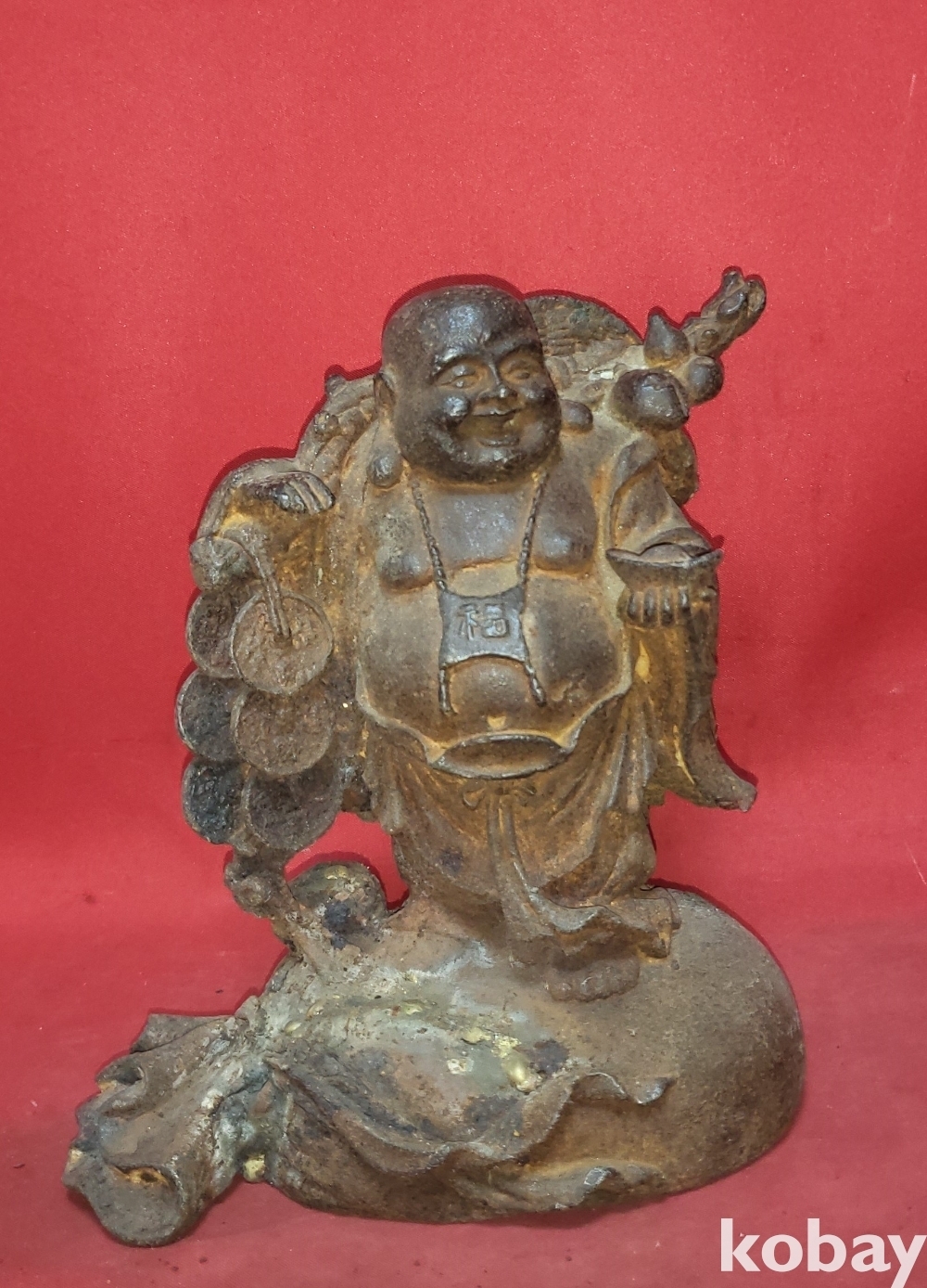 은좌와 동전 꾸러마를 어께에 둘러메고 가슴에는 복(福) 문양이 있는 재물을 상징하는 형상입니다,