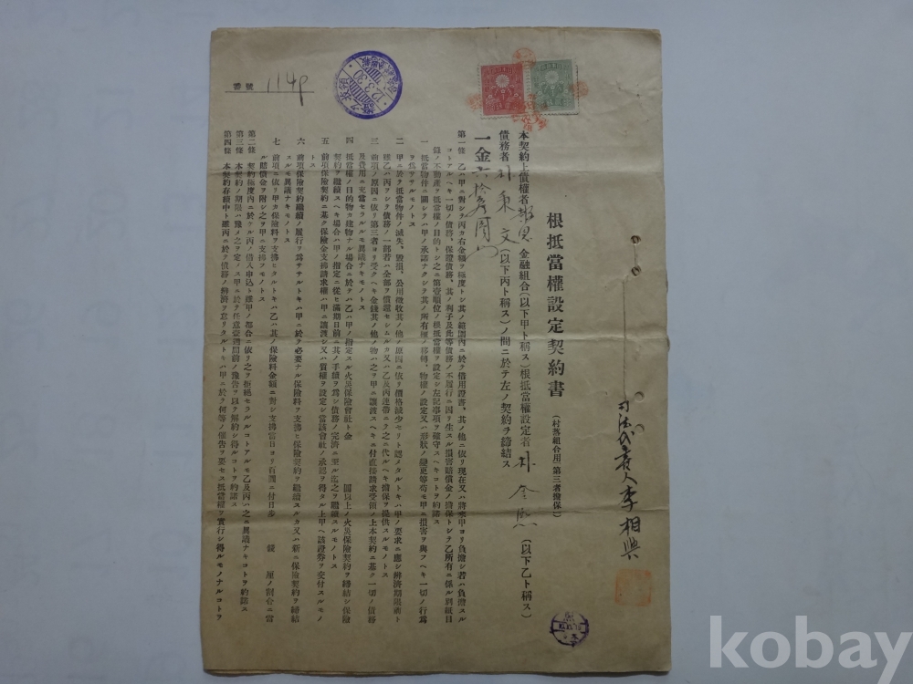근저당권 설정계약서 - 보은군 금융조합 (소화10년)