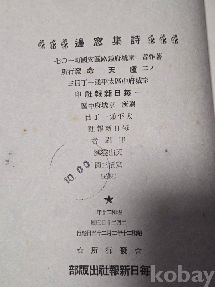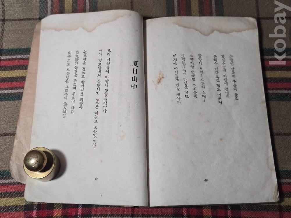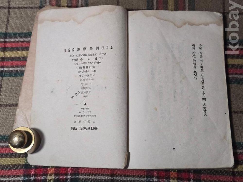 본 경매품 시집의 판본은 1942년 2월 25일발행 의 초판본이나, 해방이후 시인이 자신의 친일행적을 가리기위해 시집말미의 친일시 4편을 떼어내고 목록의 시제목을 한지로 붙여 가린후 판매한 판본입니다.