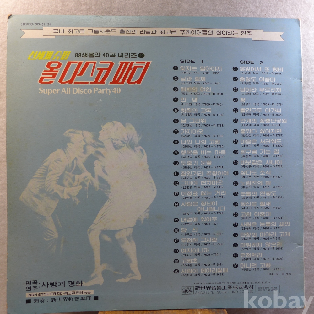 (희귀)LP음반: 사랑과 평화 편곡,연주 : "올 디스코 파티" 앨범