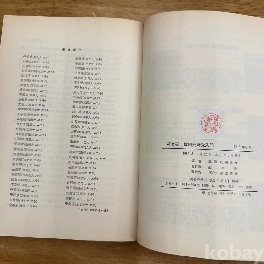 [한국사] 한국사연구회 , <한국사 연구 입문 제2판>, 지식산업사, 1987, p. 571, 상태 중하급(사진참조)