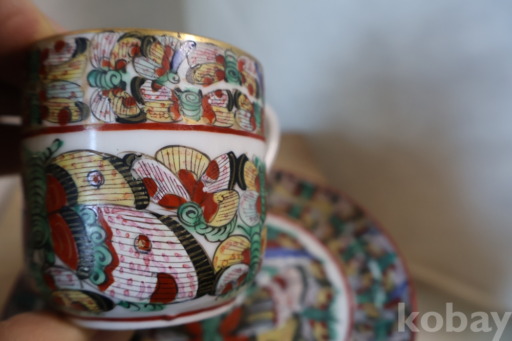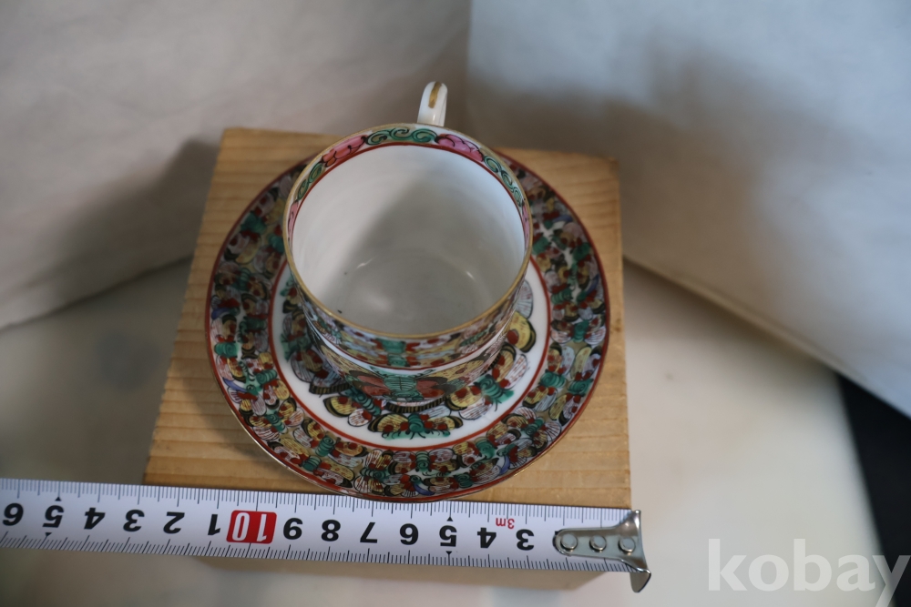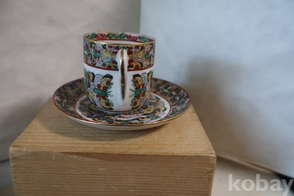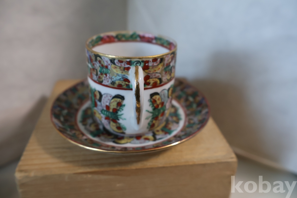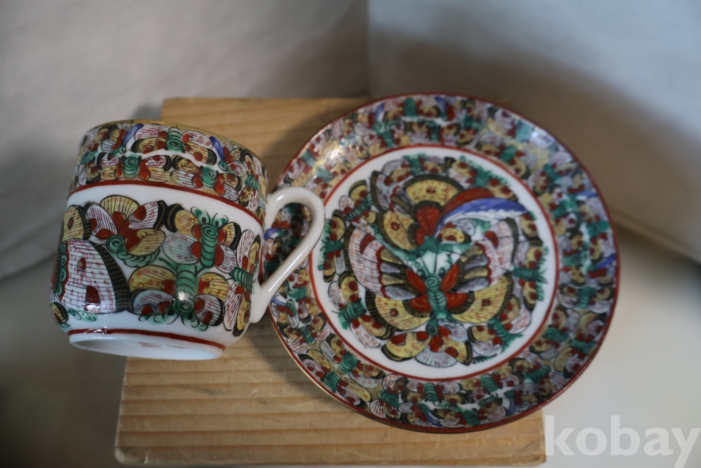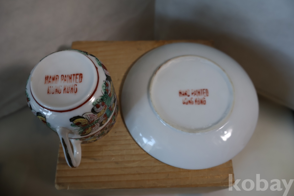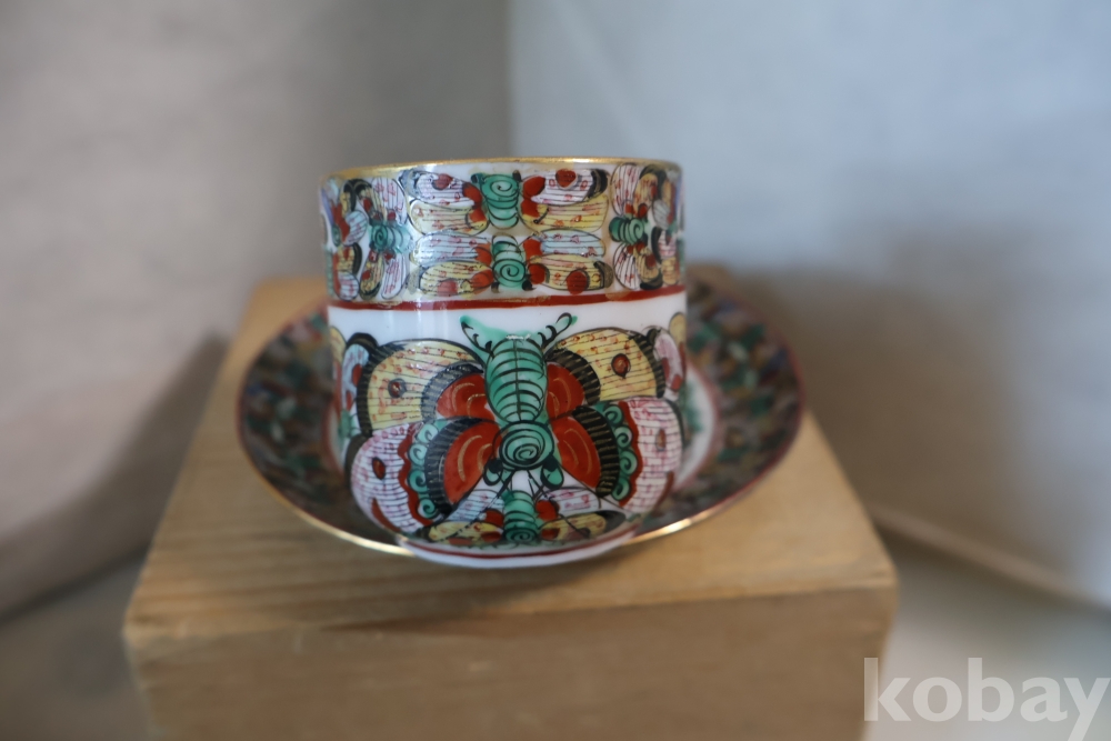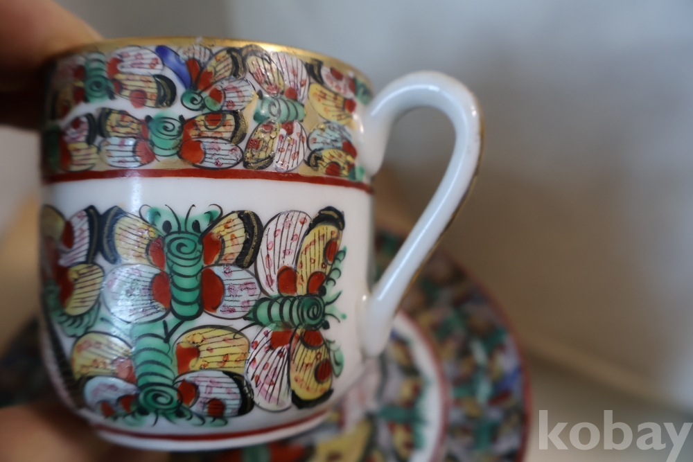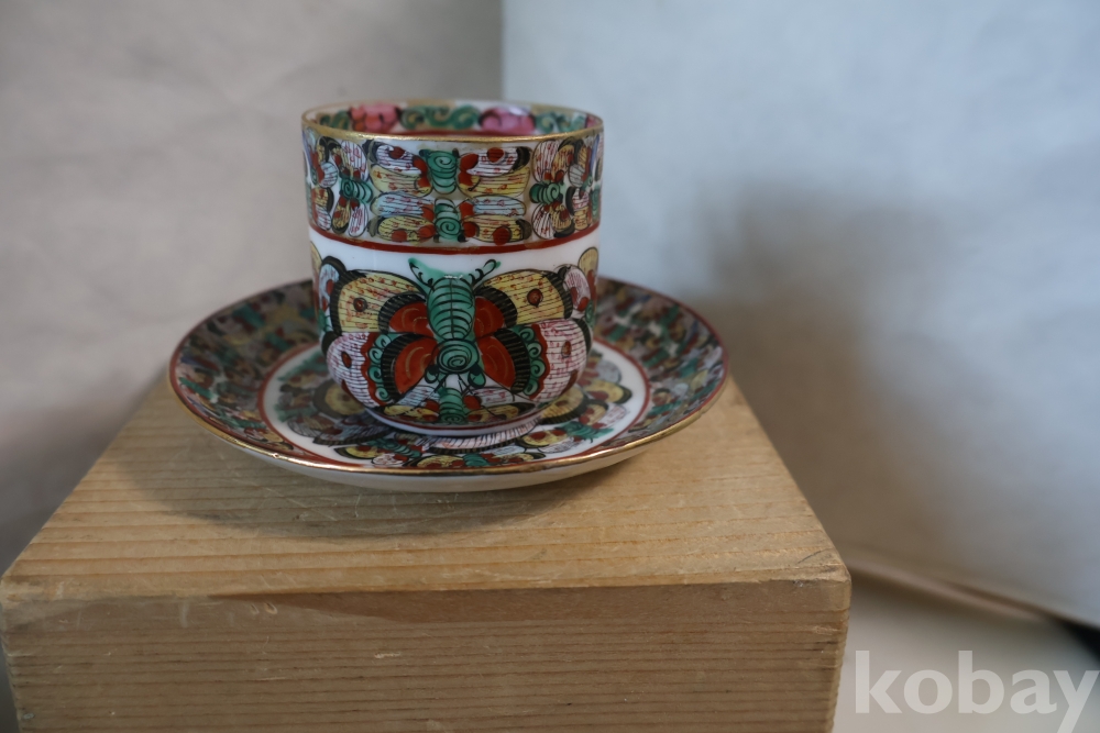 청 말기 홍콩 제조 유럽 수출 도자기 나비 차잔 임니다 극히 귀한 나비 문양을 가진 명품 임니다 /white104