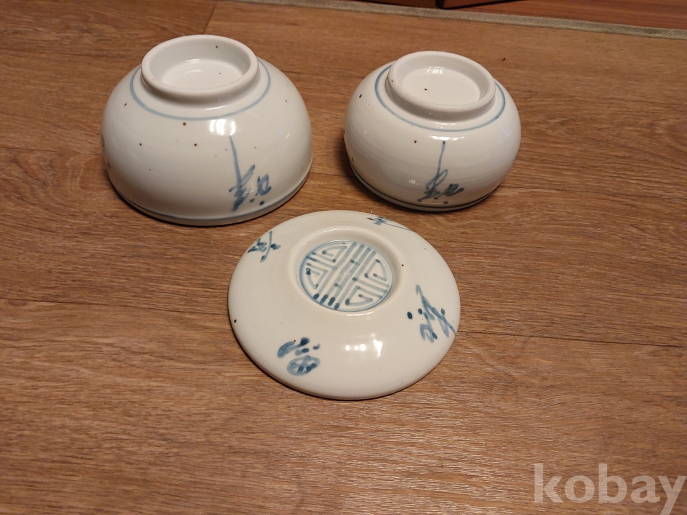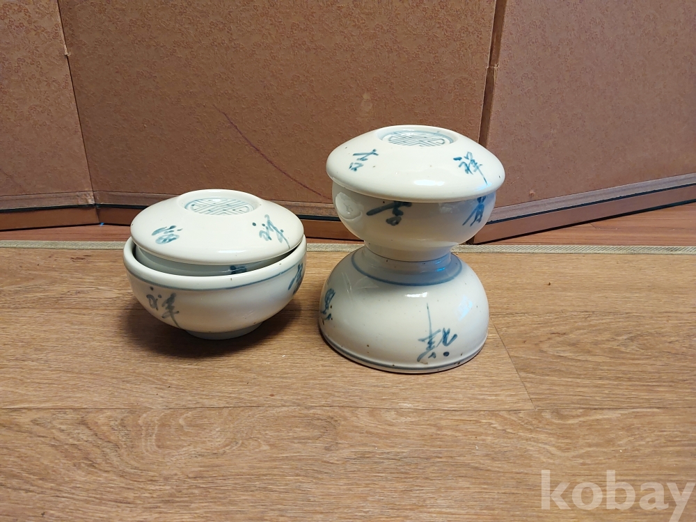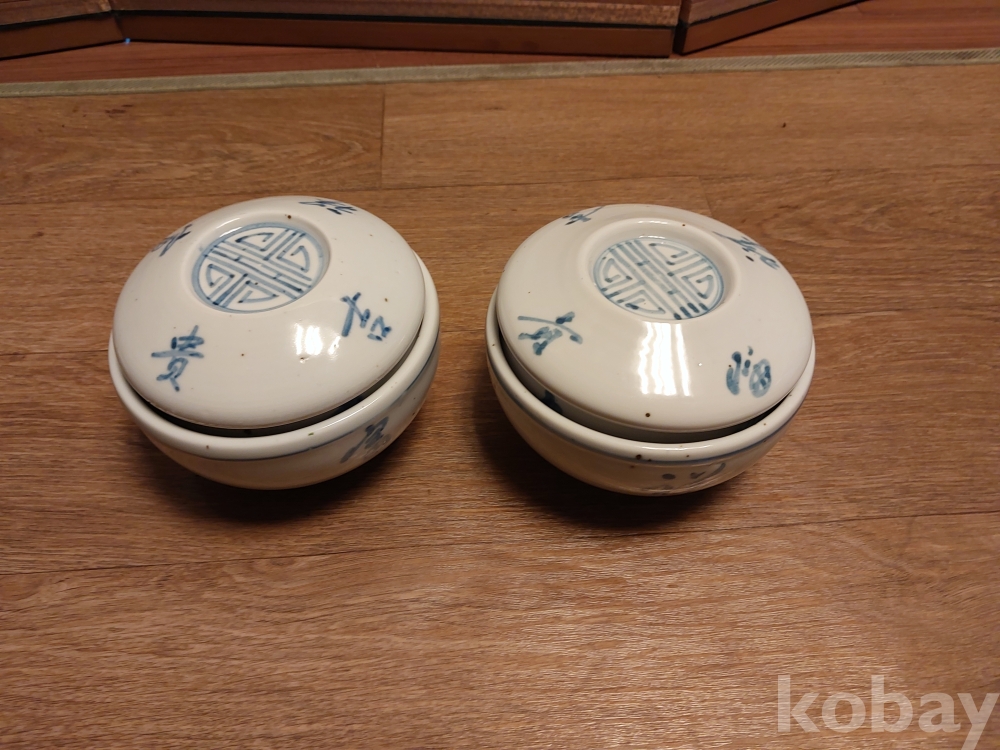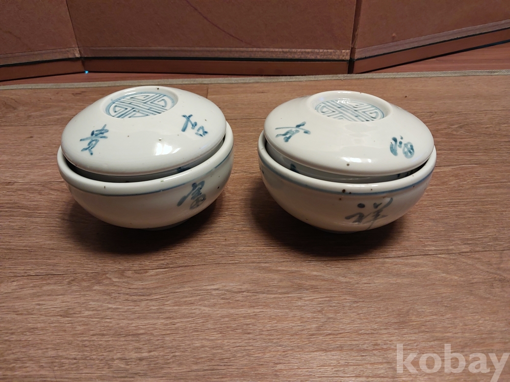 수제 물레 성형 수복길상 친필 글이 있는 주발 2조입니다.