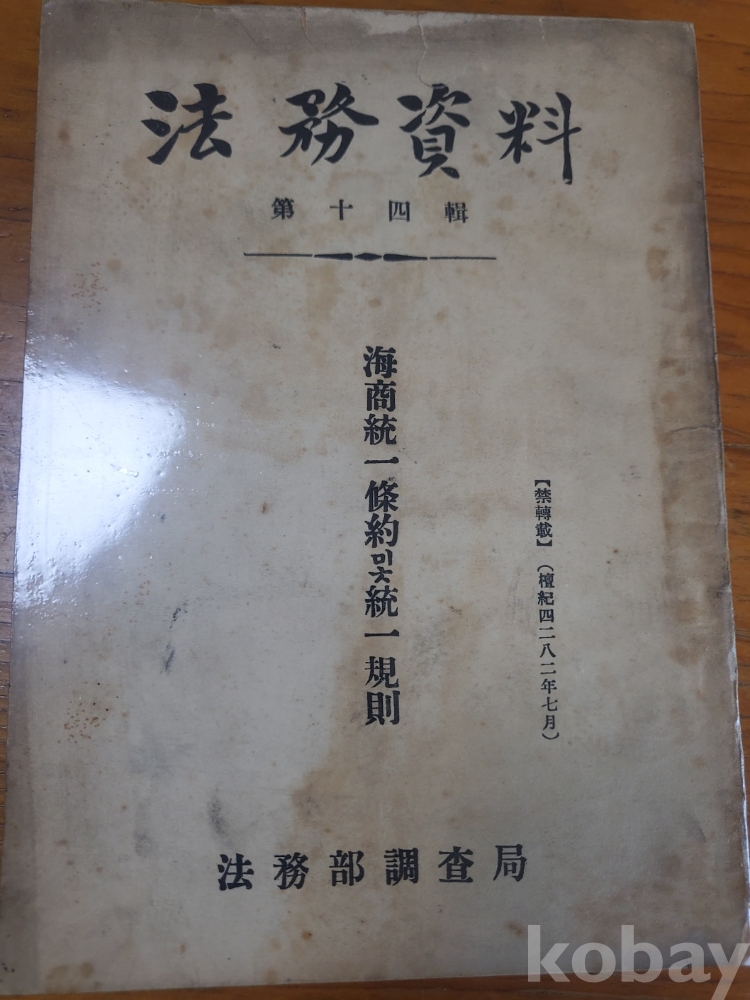 1. 법무자료 제14집 - 해상통일조약 및 통일규칙, 법무부조사국, 1949년, 91쪽, 상태 상, 사진 참조