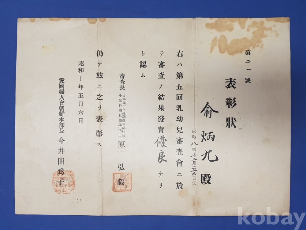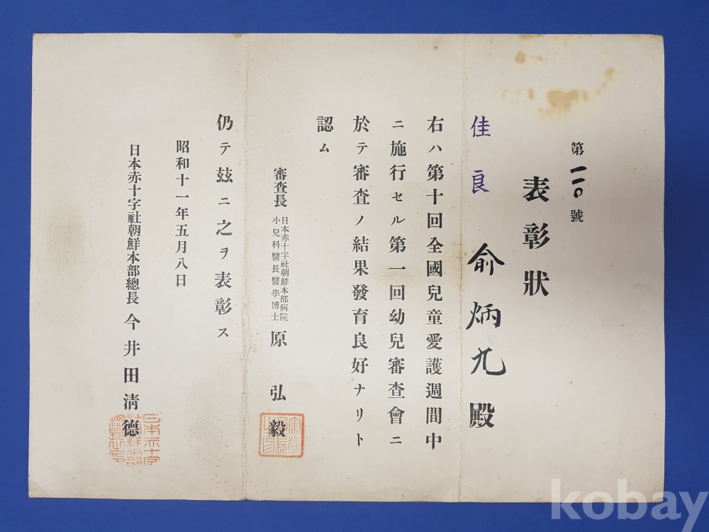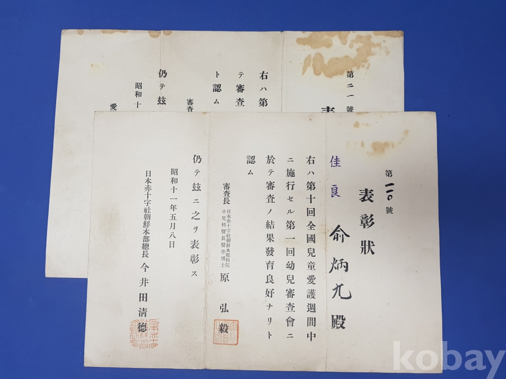 **** 표창장 2부/일본 적십자사 조선본부, 애국부인회 조선본부