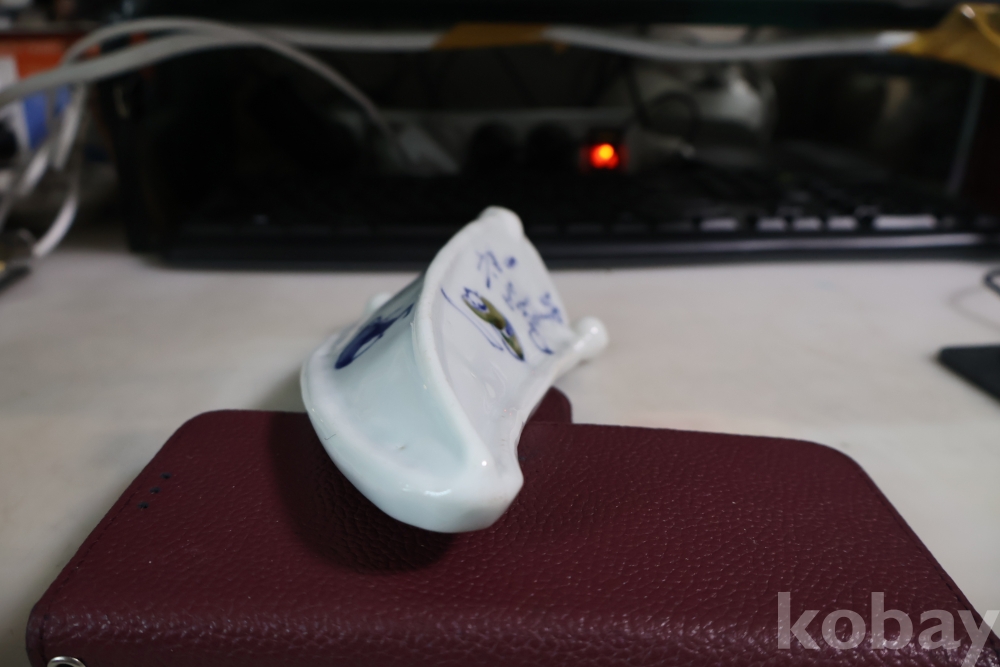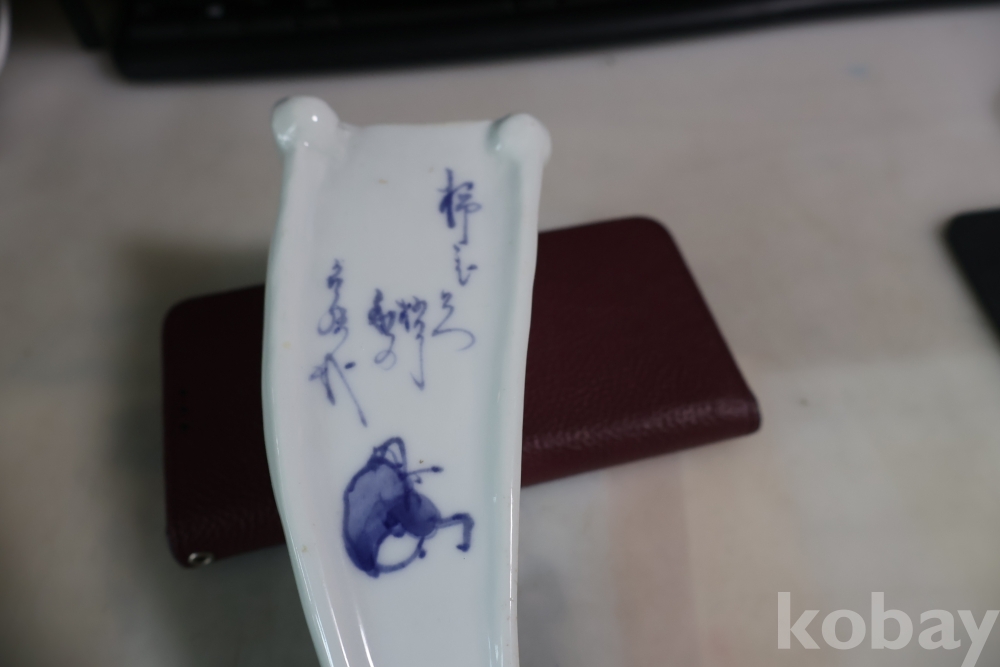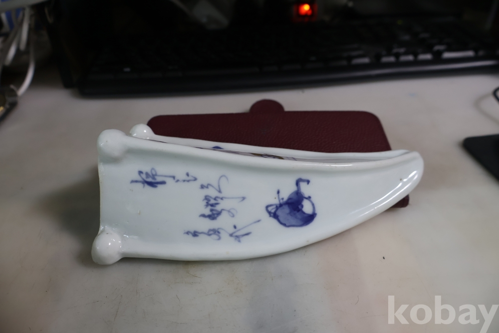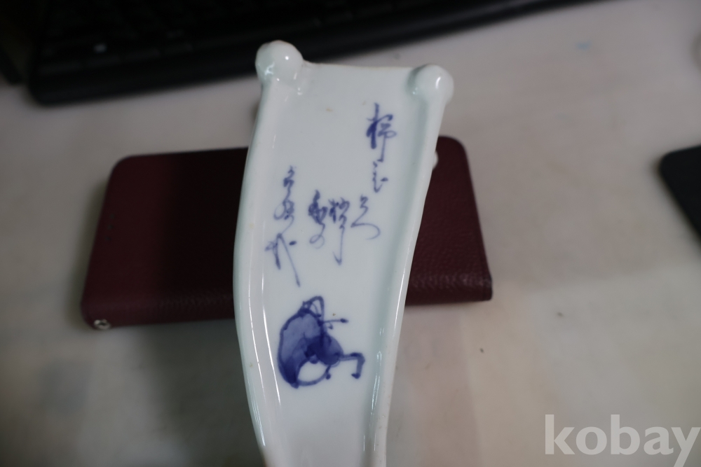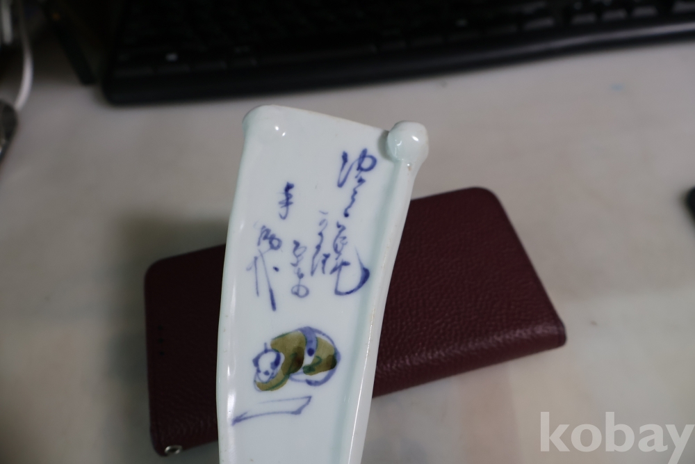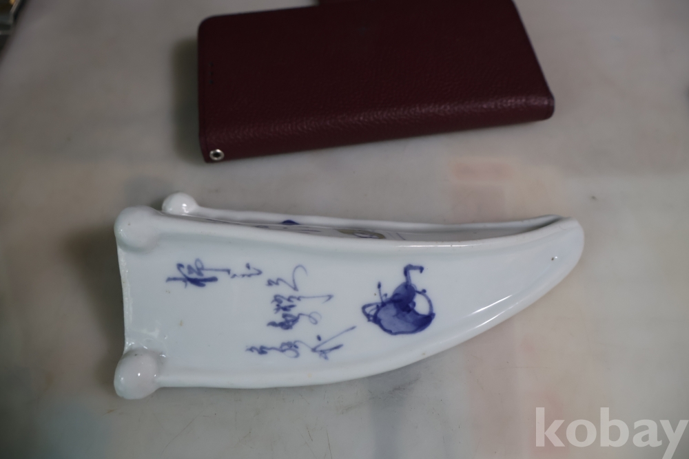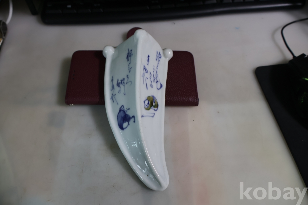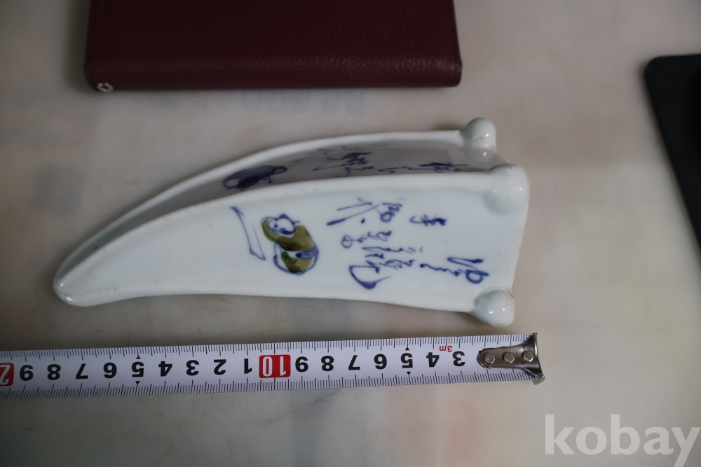 삼각형 디자인을 가진 화병 임니다 일본 시? 와카?의 화제가 보이는 귀한 명품 이며 묵직한 명품 도자기 임니다