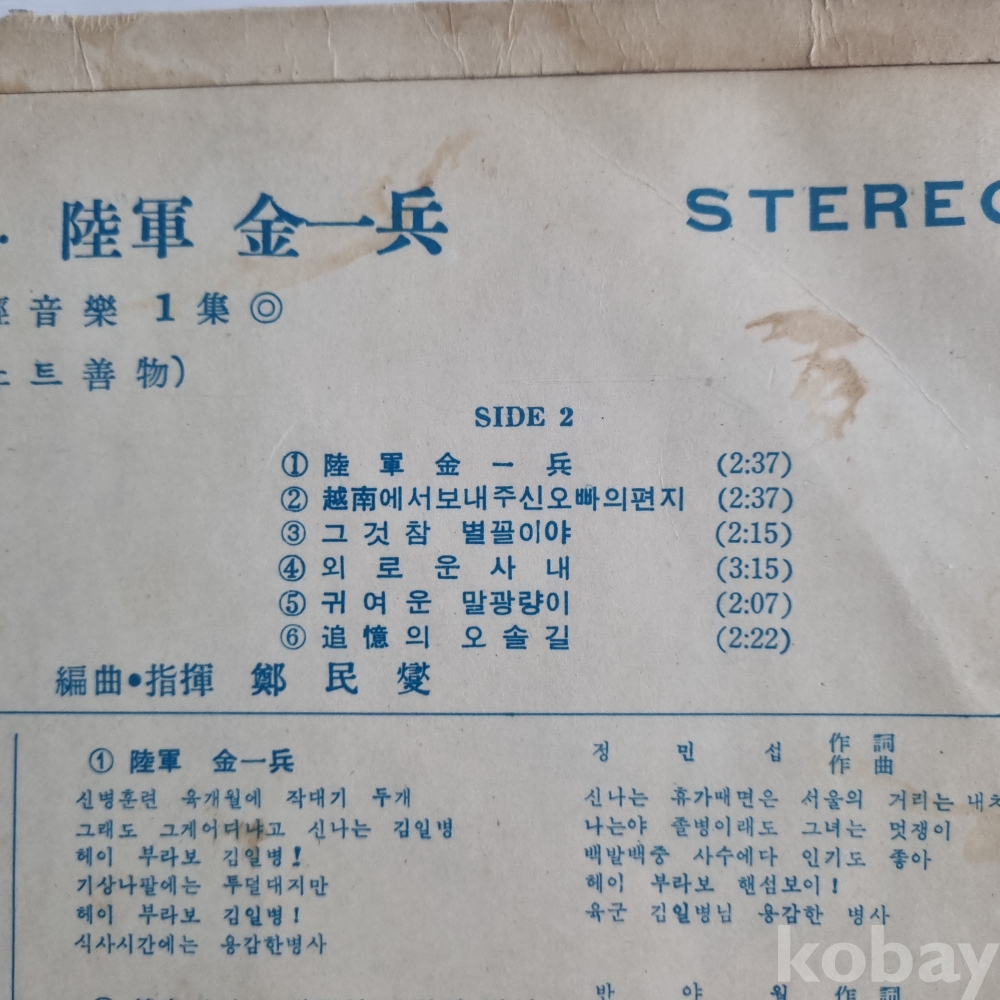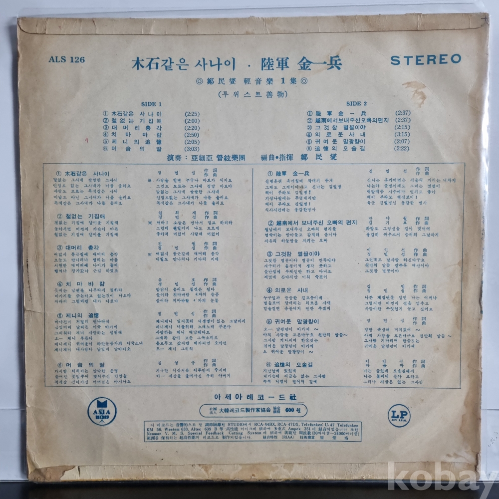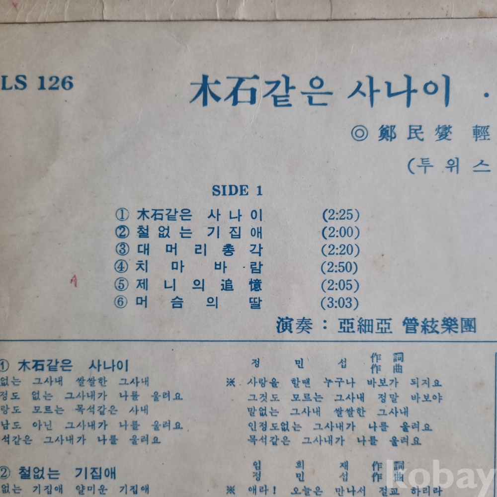 (희귀음반) 정민섭 경음악 1집 [木石같은사나이, 육군김일병] 아세아