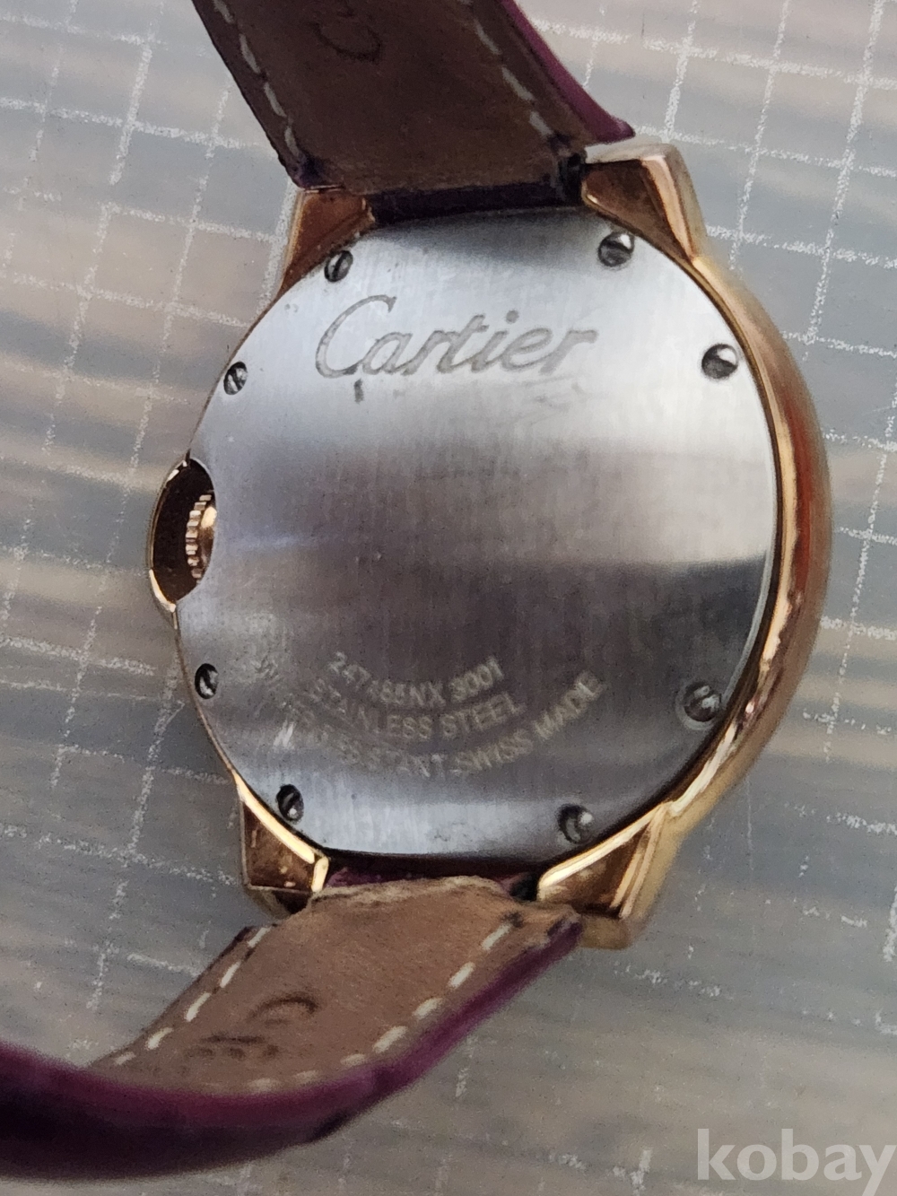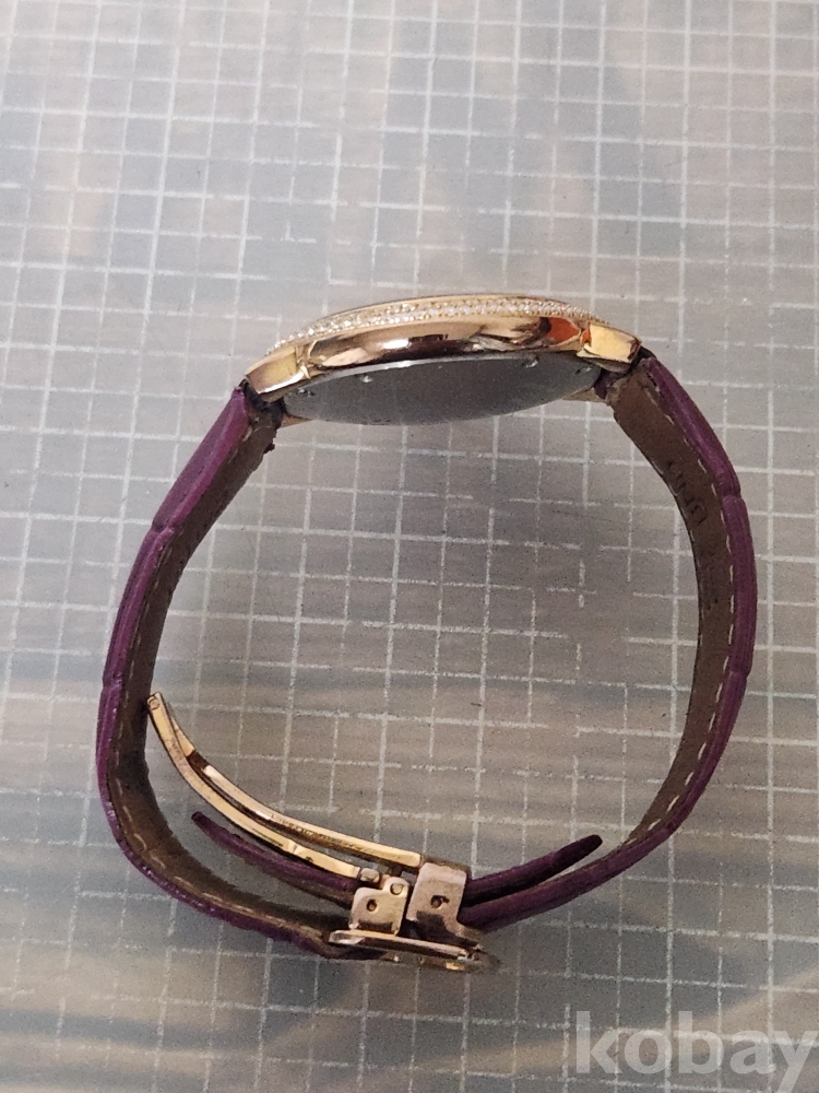 보라색 가죽 스트랩이 포인트입니다