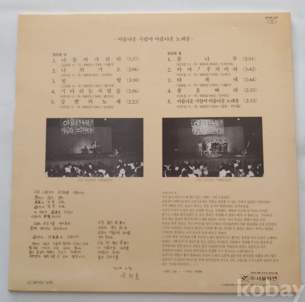아름다운 사람아 아름다운 노래를Lp/아야! 우지마라,타복네