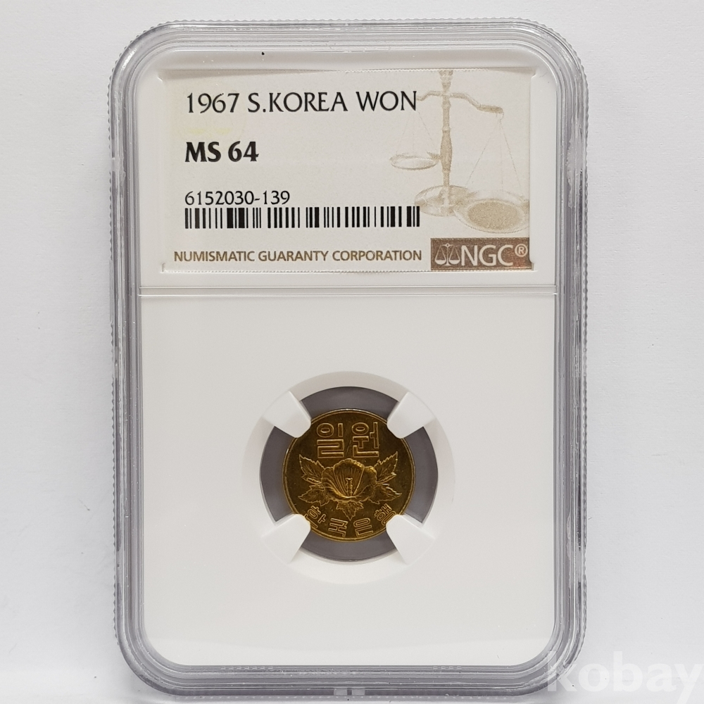 - 준특년도 1967년 1원 / 1주 NGC MS 64 그레이딩 인증 주화