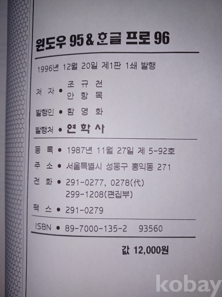 윈도우 95와 한글 프로 96' 교재 수집용 판매합니다