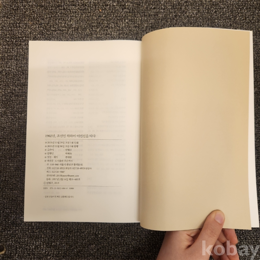 [한국근대사, 한미관계, 하와이, 이민] 안형주, <1902년 조선인 하와이 이민선을 타다>, 푸른역사, 2013, p. 395, 상태 중상급(사진참조)