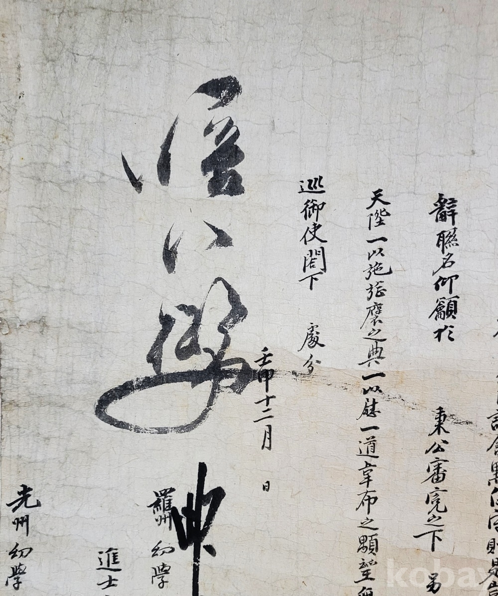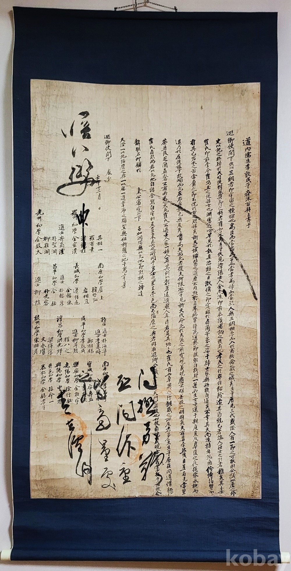 당시 순어사의 처분과 수결에 마패 날인되고 상태 온전하며 두터운 장지에 족자 표구되어 있습니다.